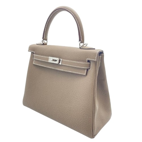 エルメスのケリーバッグは洗練されたデザインと高品質な素材で、多くのファッショニスタから愛され続けています。本商品は、シックなエトゥープカラーと耐久性のあるトゴ素材で仕立てられており、日常使いからフォーマルな場まで幅広いシーンで活躍します。W25のサイズは、ちょうど良い収納力でありながら、コンパクトで持ち運びやすいのが特徴です。