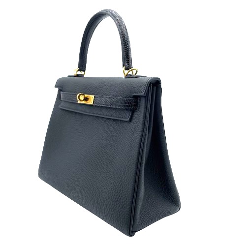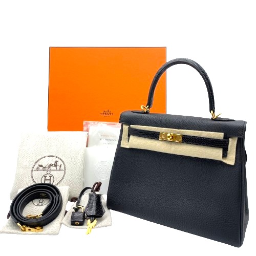 エルメスの名品「ケリー」バッグのご紹介です。オリジナルケリーシリーズをさらに高級感あふれる仕様に仕立てた「ケリー タッチ」は、上質なリザード素材を使用し、エレガントなブラック系カラーバリエーションが特徴です。サイズ25は、使い勝手の良さと持ち運びやすさを兼ね備えた完璧なバランスを実現しています。フォーマルからカジュアルまで幅広いシーンでお使いいただけるアイテムです。