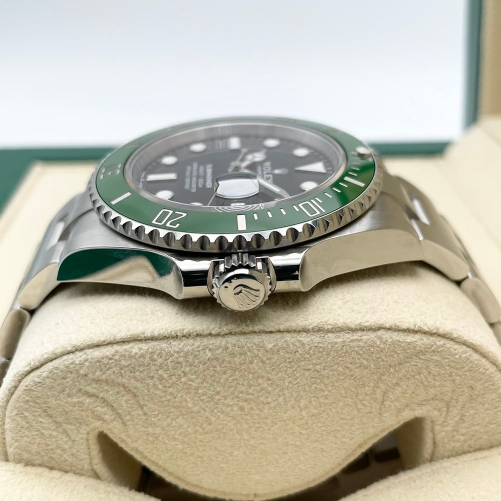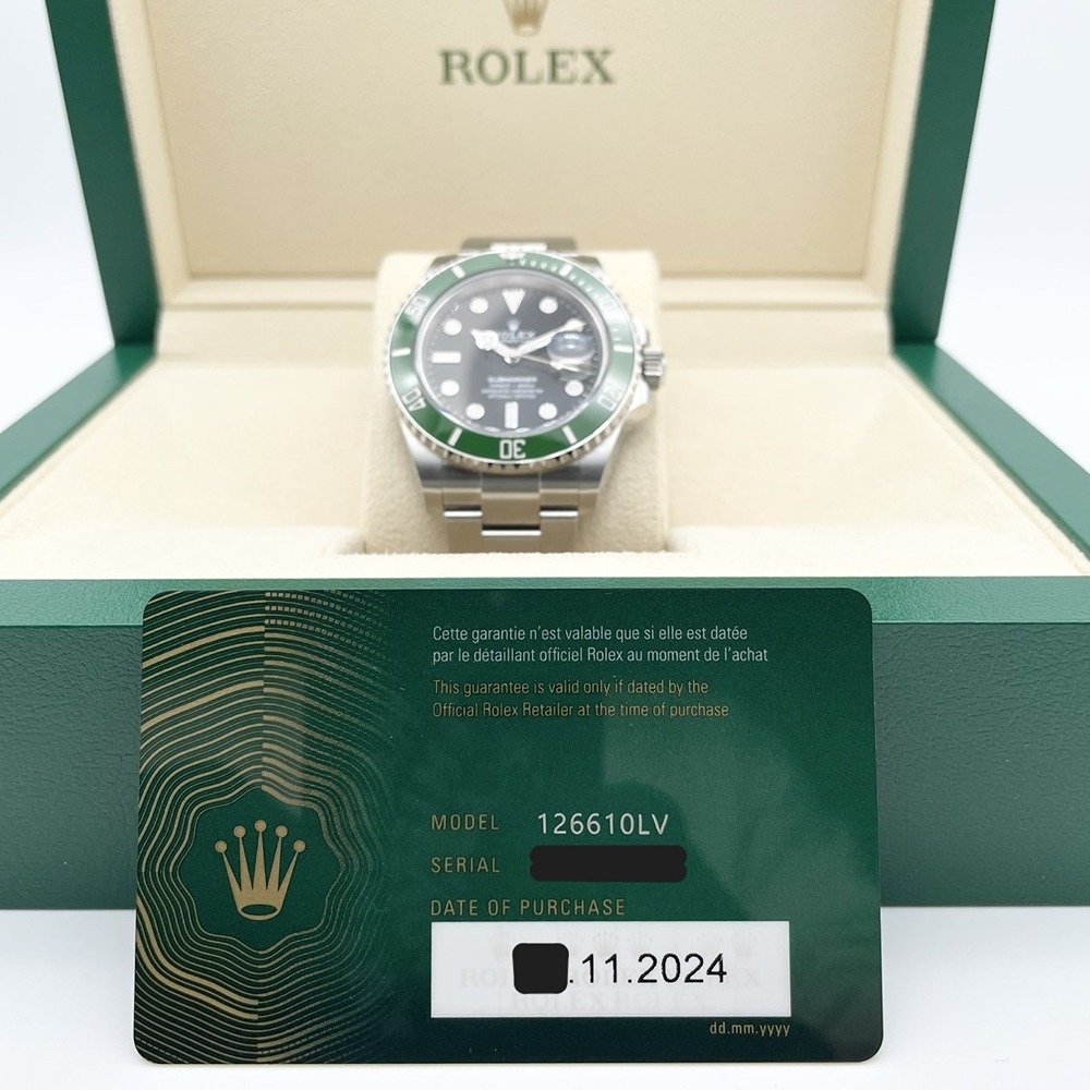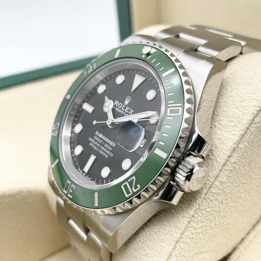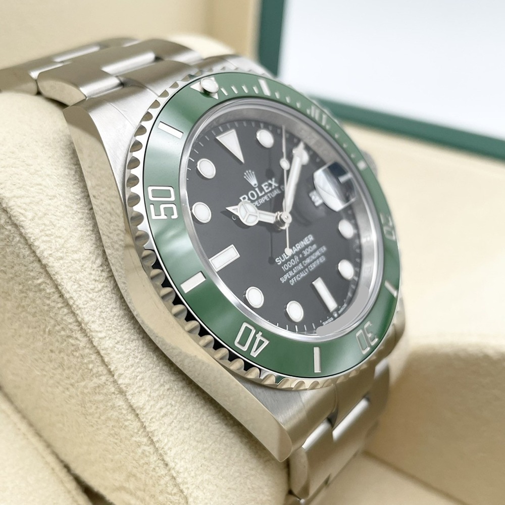 ロレックス サブマリーナーデイト 126610LVは、ステンレススチールを使用した高級感ある時計です。独特の緑色の文字盤は、視認性と美観を兼ね備えたデザインで、多くの時計愛好者に高く評価されています。防水性能もあり、日常使いからフォーマルなシーンまで幅広く活躍します。堅牢性と洗練さを兼ね備えたこのモデルは、長期にわたり使うことができるため、まさに一生物の時計と言えます。