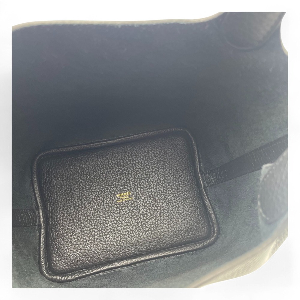 エルメスの代表的なモデル、ピコタンロックは、そのシンプルかつエレガントなデザインで多くのファッション愛好家から愛されています。このノワールカラーのバッグは、トリヨンクレマンスという柔らかで耐久性のある革素材を使用しており、持ちやすさと高級感を兼ね備えています。PMサイズは日常使いにちょうど良い大きさであり、収納力にも優れています。ピコタンロックは、ロックのディテールが特徴的で、そのシグネチャーデザインはエルメスならではの洗練された魅力を放っています。