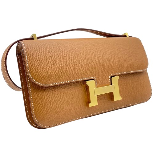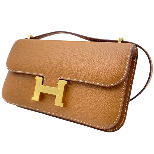 エルメスの「コンスタンスエラン」は、その優雅なデザインと卓越した職人技が魅力の逸品です。ゴールドカラーは、上品でエレガントな印象を与え、どのようなシーンでもその存在感を主張します。エプソン素材の採用により、高い耐久性と光沢感を兼ね備えており、長く愛用することができるでしょう。このバッグは、ファッションのアクセントとしてだけでなく、持つだけで洗練された女性の象徴として、その持ち主の個性をさらに引き立てることでしょう。