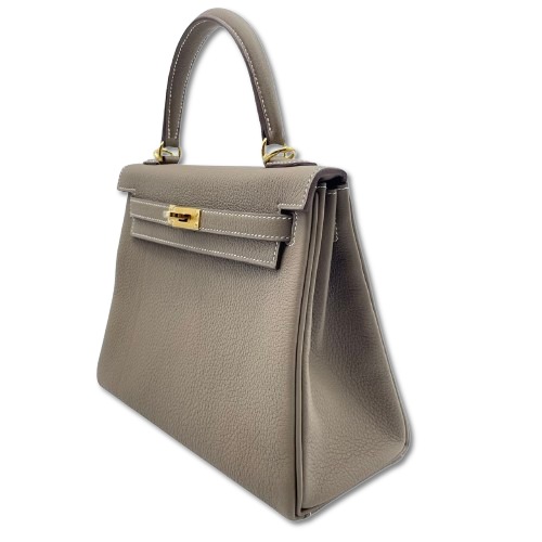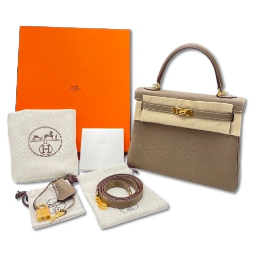 エルメスのケリーバッグは洗練されたデザインと高品質な素材で、多くのファッショニスタから愛され続けています。本商品は、シックなエトゥープカラーと耐久性のあるトゴ素材で仕立てられており、日常使いからフォーマルな場まで幅広いシーンで活躍します。W25のサイズは、ちょうど良い収納力でありながら、コンパクトで持ち運びやすいのが特徴です。