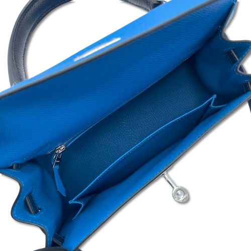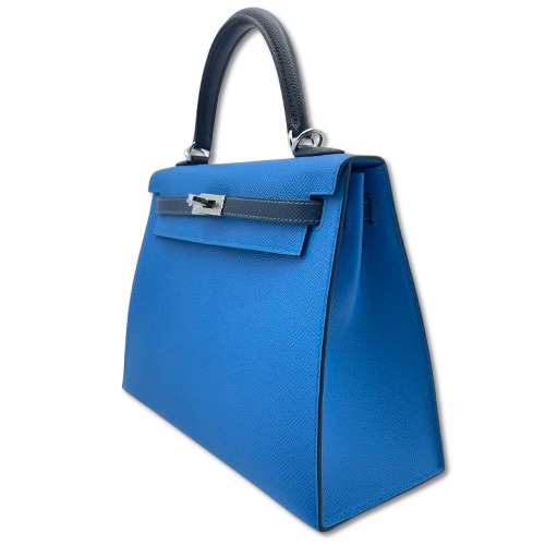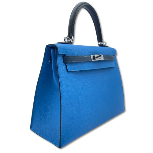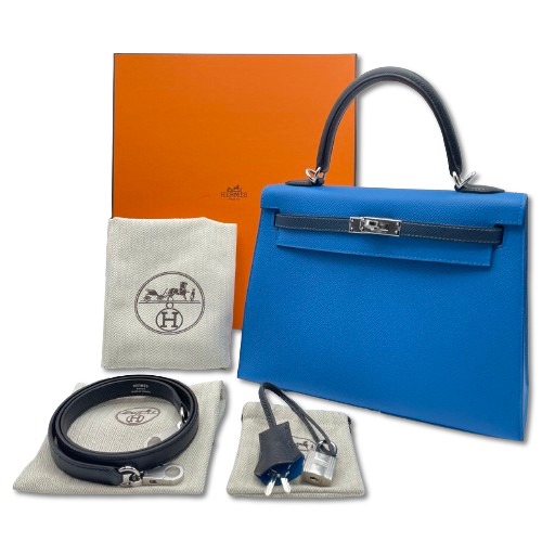 エルメスのケリーは、多くのファッション愛好者やセレブから愛されるアイテムです。特にこのバッグはブルーザンジバル、ブルードプリュス、そしてブラックという3つのユニークなカラーを組み合わせ、スタイリッシュでモダンな印象を与えます。エプソン素材を使用しているため、耐久性が高く、長く使用しても型崩れしにくいのが特徴です。その25サイズは、日常使いにもフォーマルな場面にもぴったりで、さまざまなシーンでその魅力を発揮します。
