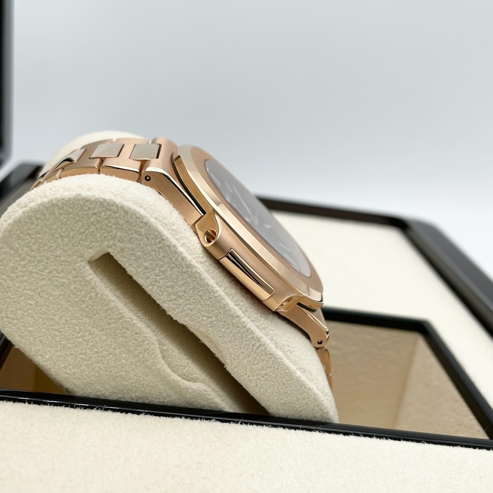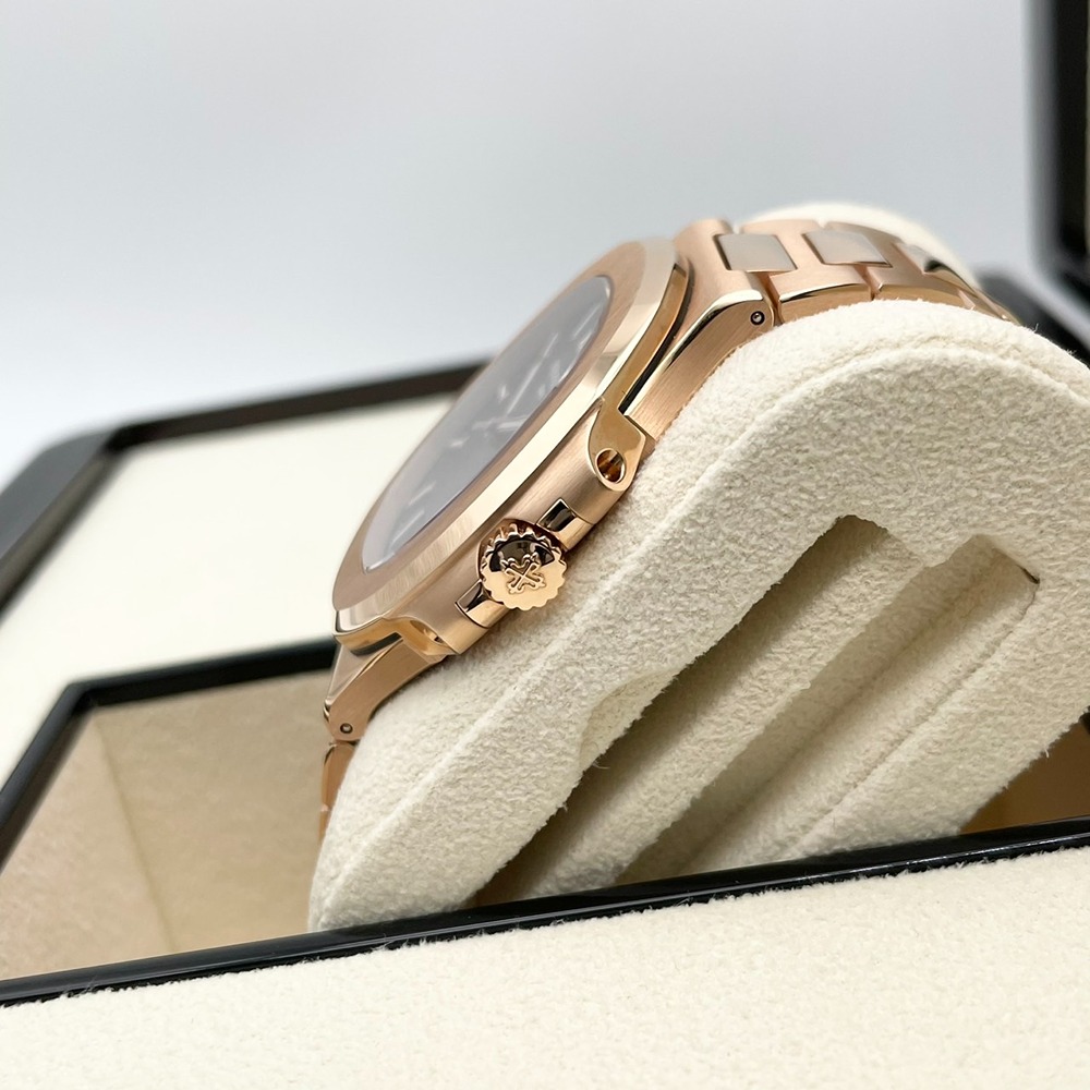| 出品説明 | パテックフィリップのノーチラスは、高級時計の象徴として名高いモデルです。特にこの5711/1R-001は、希少なローズゴールドのケースとブラウン文字盤の組み合わせが際立つ逸品です。シリコンバランススプリングが精度を保ち、視認性の高いアプライドインデックスがエレガントさを引き立てます。スポーティーでありながらエレガントなデザインは、どんなシーンにもマッチするため、ビジネスからプライベートまで幅広く活躍します。高級感を感じさせる40mmのボディは、圧倒的な存在感を持ちながらも快適な装着感を提供します。この時計を手にすることで、日常に特別な輝きを添えることができるでしょう。