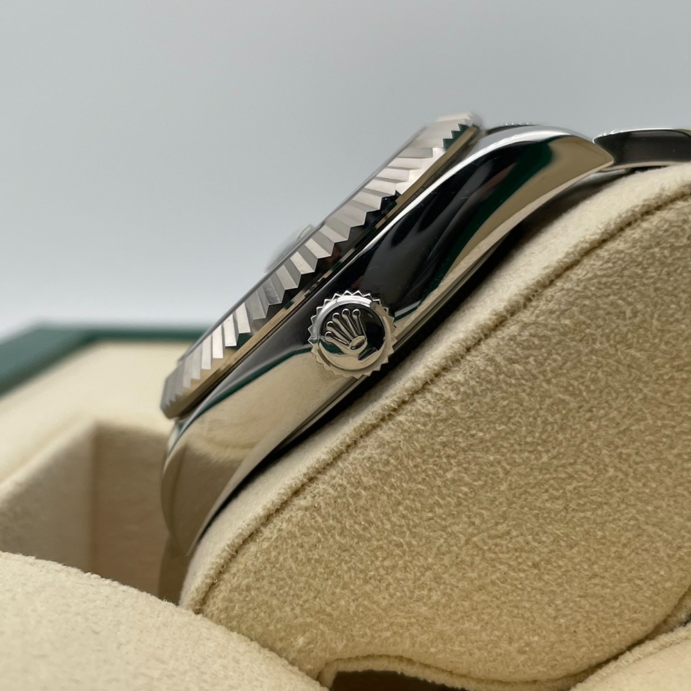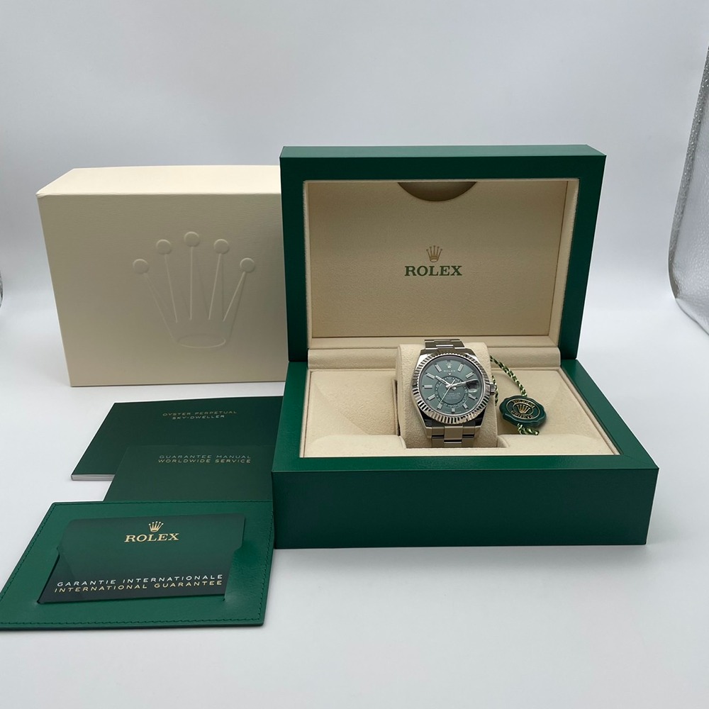 ロレックス スカイドゥエラーは、機能性とエレガンスが融合した至高のアイテムです。ミントグリーンの美しい文字盤は高級感あふれるデザインで、視覚的にも爽やかな印象を与えます。このモデルは、世界中の旅行者やビジネスマンに最適なデュアルタイムゾーン機能を備え、日常生活からビジネスシーンまで幅広くサポートします。さらに、十分な耐久性と正確性を持つムーブメントが装備されており、信頼性の高いパフォーマンスを提供します。ぜひ手に入れていただきたい逸品です。