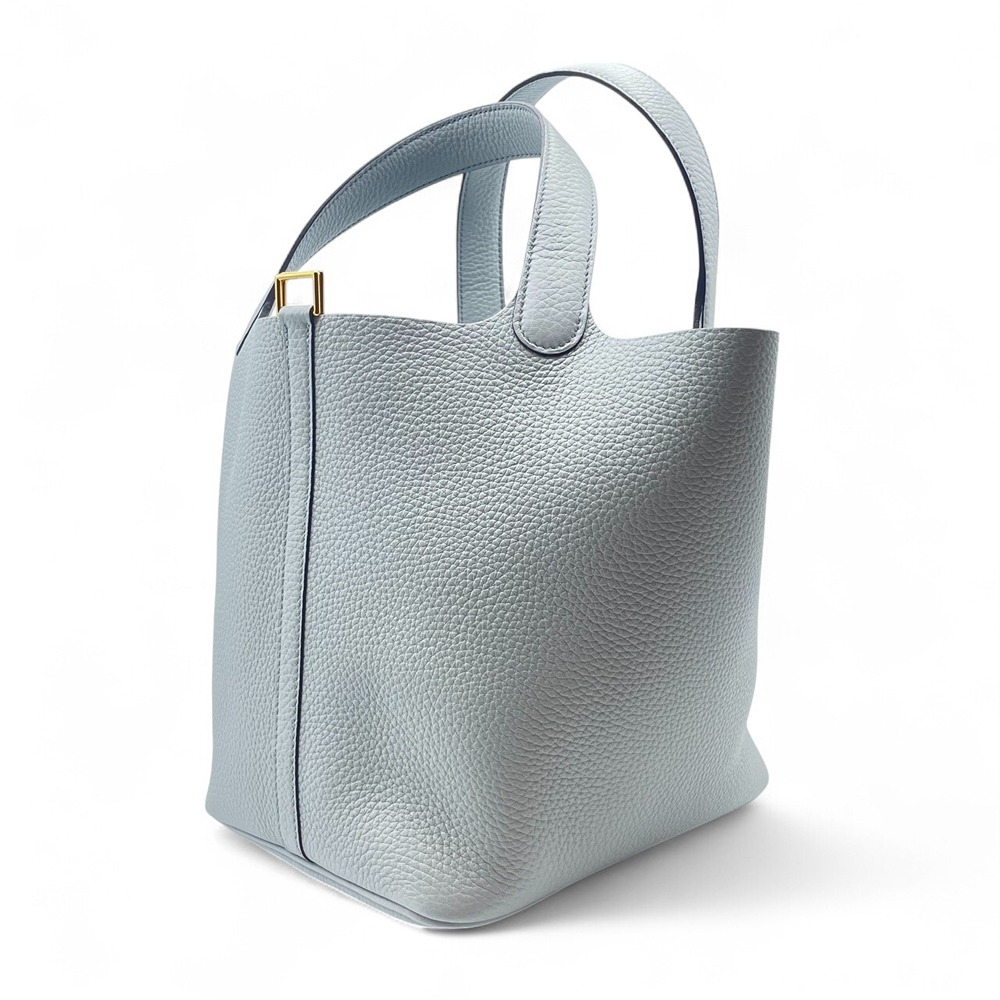 エルメスのピコタンロックは、その特徴的なデザインと優れた機能性が世界中で愛されているアイテムです。このブルーペールという美しい色合いは、エレガントでありながら上品な雰囲気を醸し出します。22サイズのゆったりとした収納力は、日常のあらゆるシーンに対応し、使い勝手の良さが魅力です。シンプルながらも洗練されたデザインは、どんなスタイルにもマッチし、持つだけで上品な女性の魅力を引き立てます。