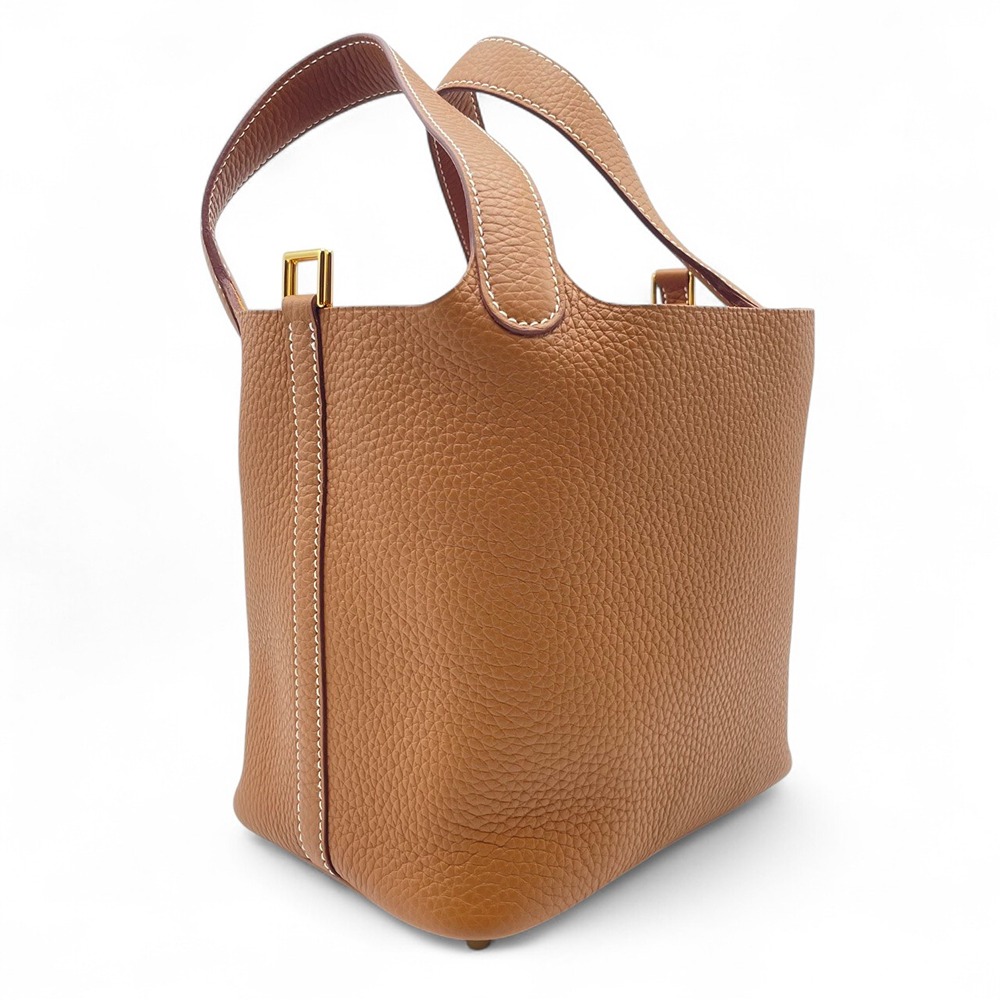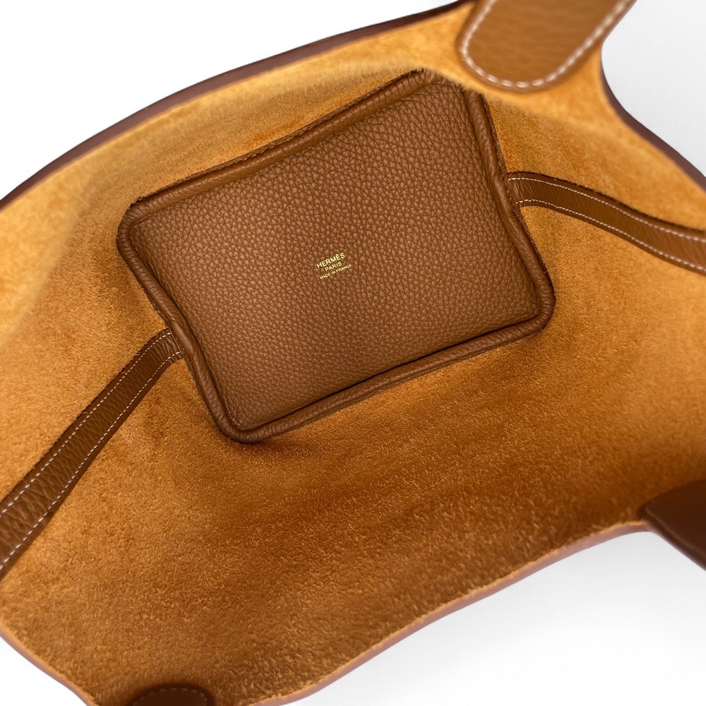 エルメスのピコタンロックは、そのシンプルでエレガントなデザインが多くの女性に愛され続けています。このバッグは、最高級のトリヨンクレマンス素材を使用し、耐久性と柔軟性を兼ね備えています。ゴールドカラーが上品な印象を与え、どんなシーンでも活躍します。サイズPMはちょうど良い大きさで、日常使いにも特別な日の装いにもぴったりです。ハンドル部分のデザインもこだわり抜かれており、持ちやすさと見た目の美しさを兼ね揃えています。