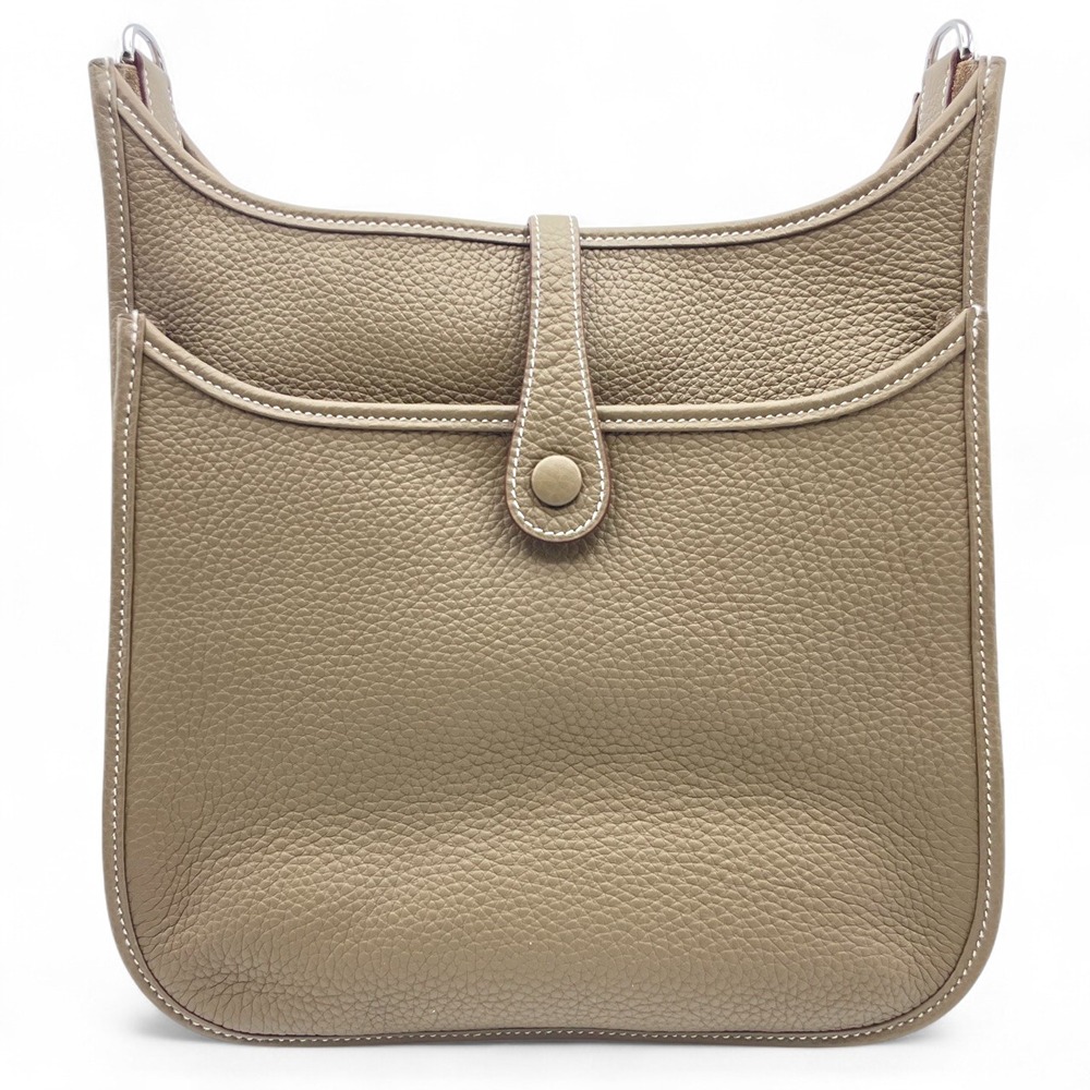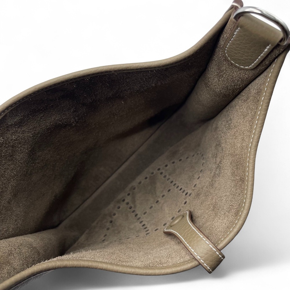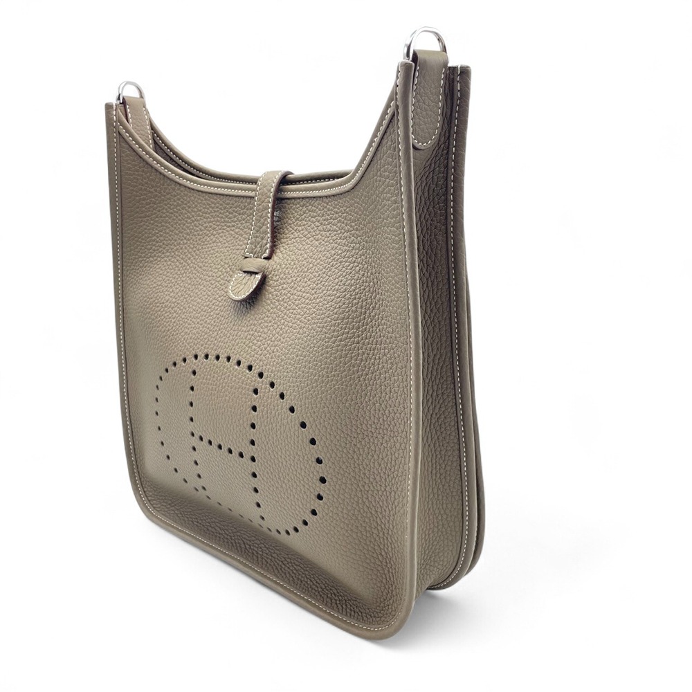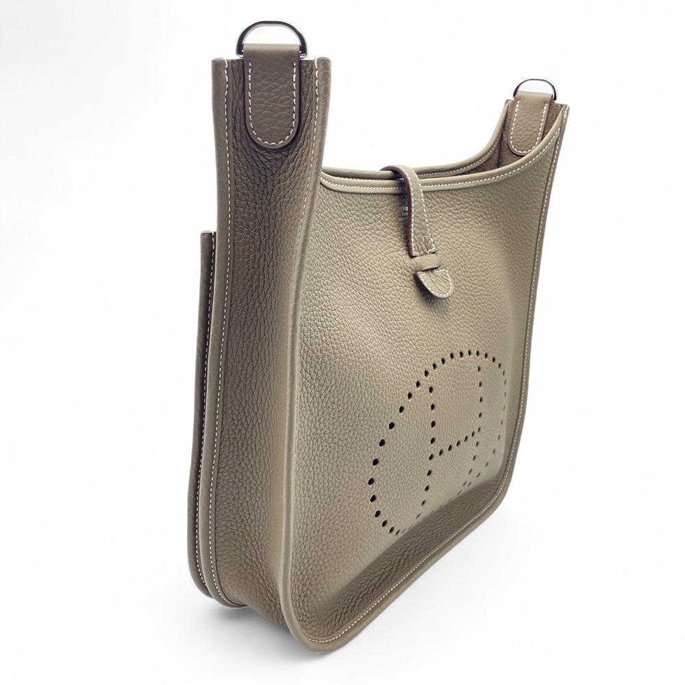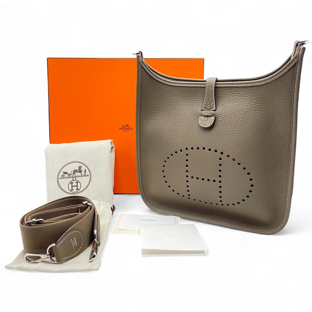 エルメス エヴリンは、上品さと実用性を兼ね備えた逸品。エトゥープカラーは落ち着いたグレーがかったベージュで、どんな服装にも合わせやすい色合い。日常生活での使いやすさを考慮してデザインされており、しっかりとした収納力を持ちながらも、スタイリッシュなデザインが魅力です。このバッグがあなたの日々をよりエレガントに、そしてどこに持って行っても恥ずかしくない一品になること間違いありません。