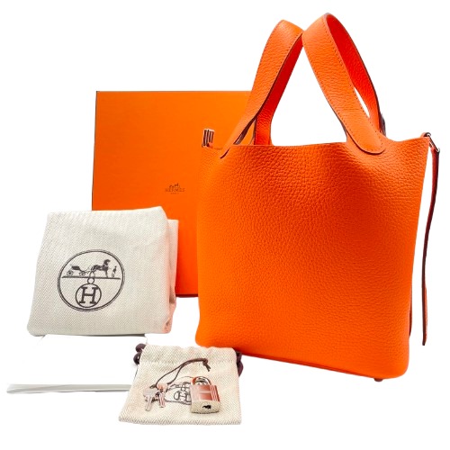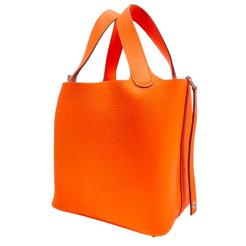 エルメスの「ピコタンロック」は、その時代を超えたデザインと実用性で、多くのファッション愛好者を魅了しています。この鮮やかなオレンジカラーは、持つ人のスタイルに華やかさをプラスし、個性を際立たせます。サイズ18cmは日常使いに最適で、ちょっとしたお出かけの際にも、その存在感を発揮します。シンプルでありながらも、エルメスならではの高級感が漂い、どんなシーンでも洗練された印象に仕上げてくれる逸品です。