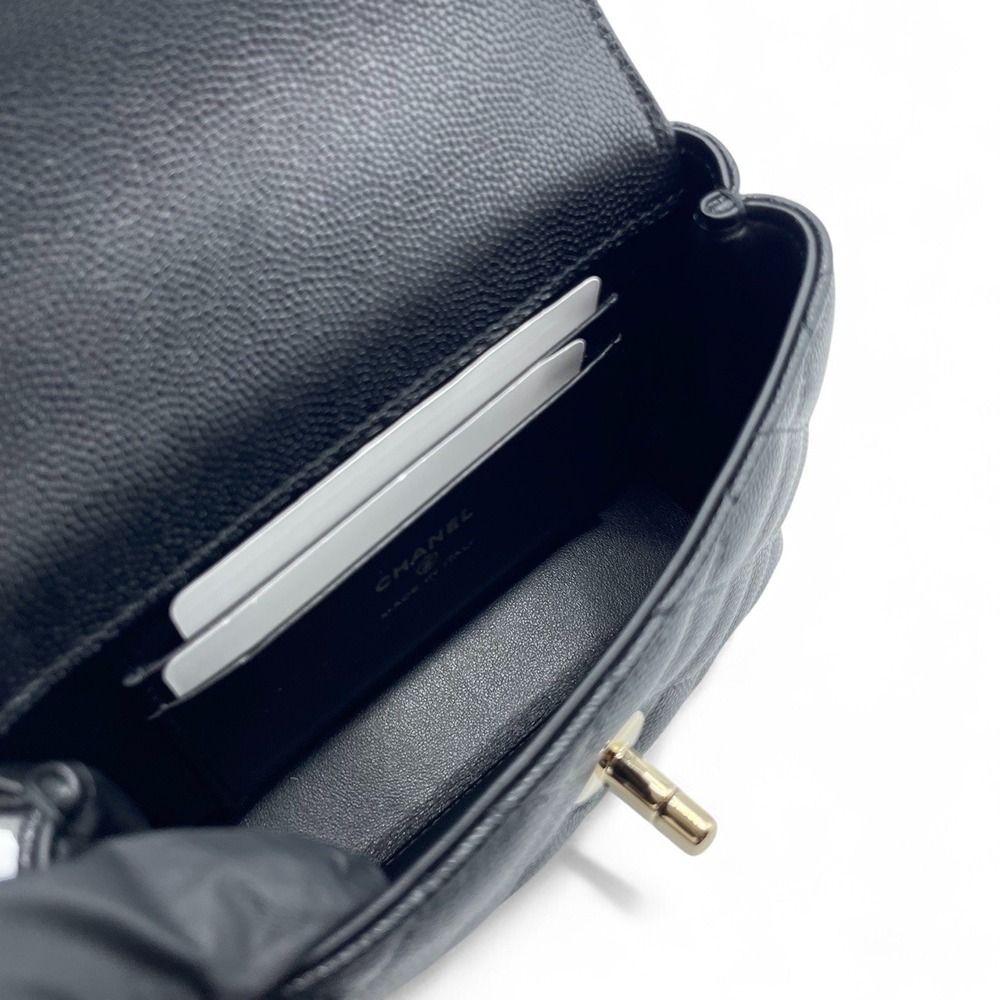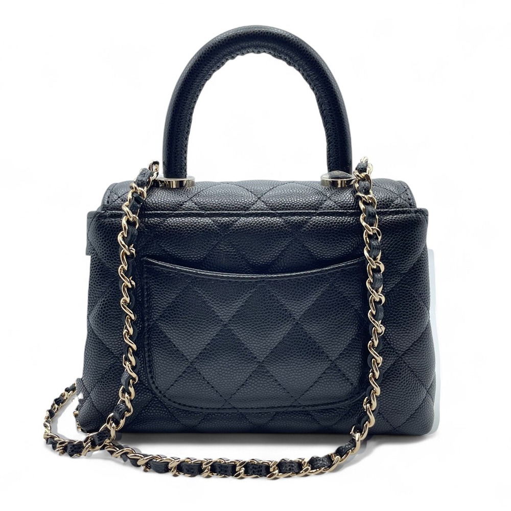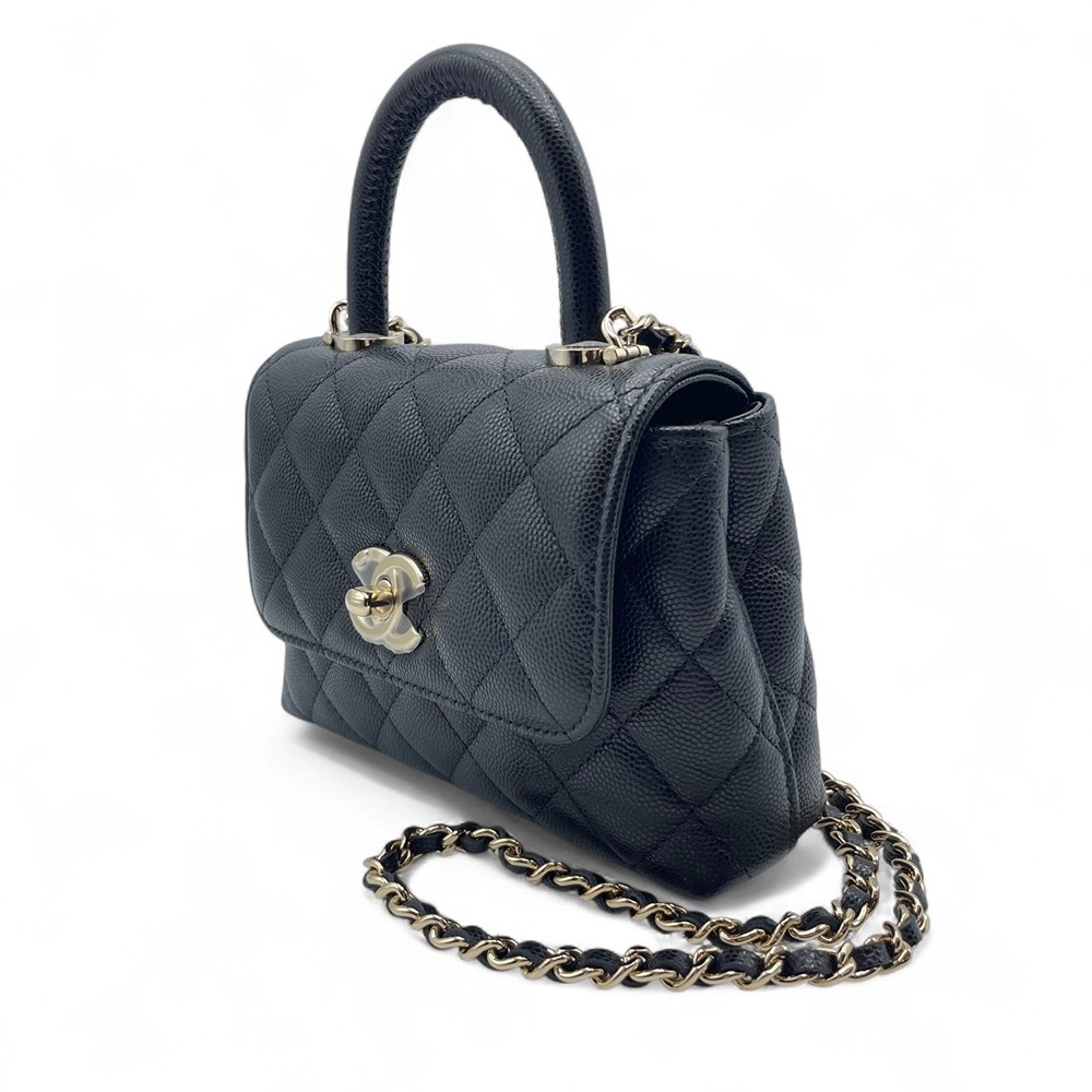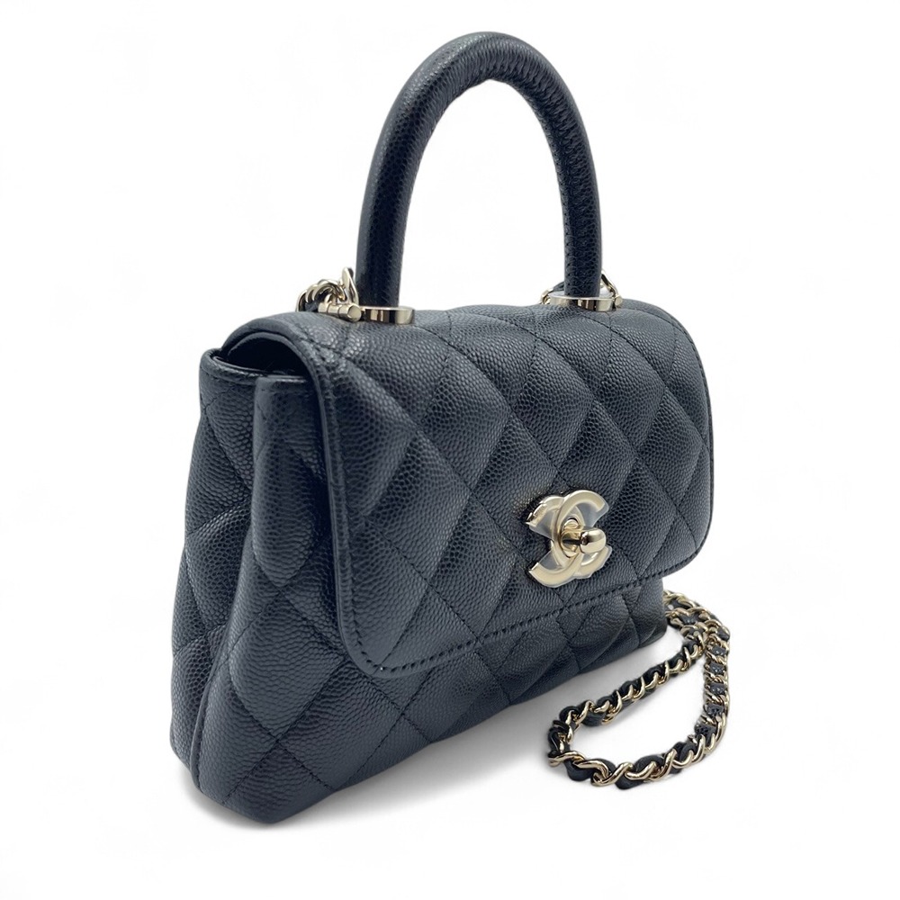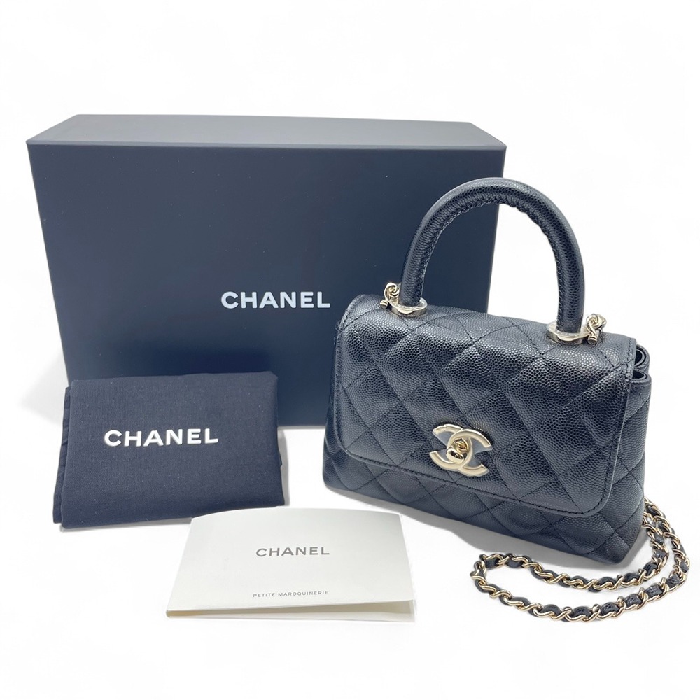 シャネルの「ココハンドル」は、ファッション界で絶大な人気を誇るエレガントなハンドバッグです。エクストラミニサイズでシックなブラックカラー、上質なキャビアスキンが上品さと高級感を醸し出します。このサイズとデザインは、日常使いから特別なシーンまで幅広く活躍します。高度なクラフトマンシップとタイムレスな美しさで、持つ人の品格を引き立てる逸品です。ファッションのアクセントとして、またはコレクションの一部として、ぜひ手に取ってみてください。