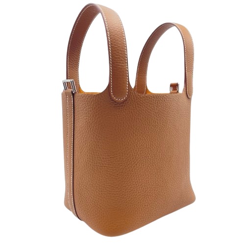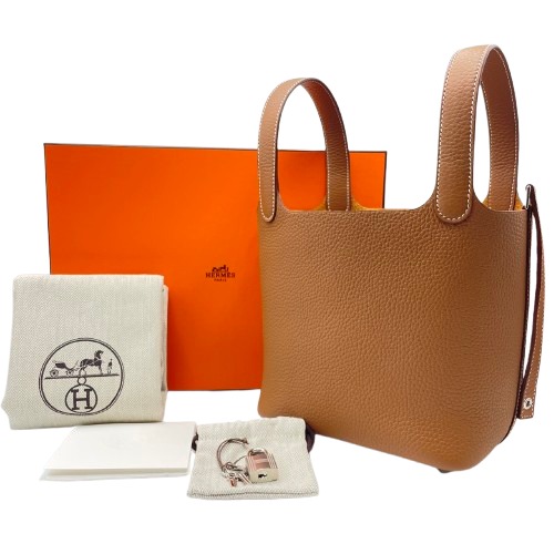 エルメスのピコタンロックは、そのシンプルでありながらエレガントなデザインが多くの人々に愛されているバッグです。上質なトリヨンクレマンスレザーを使用し、しっとりとした手触りが特徴。ゴールドのカラーはどんなスタイルにもマッチし、優れたアクセントとして機能します。PMサイズは日常使いにぴったりで、必要なアイテムを気軽に持ち運べます。バッグの中央に配されたロックが、エルメスらしいクラフツマンシップを感じさせます。