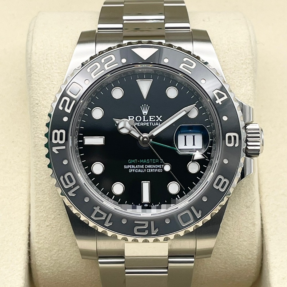 ロレックスのGMTマスターⅡは、時計愛好家や多くの旅行者に愛され続ける名作です。ステンレススチールを用いた堅牢なケースに、シンプルかつエレガントなブラックの文字盤が上品に調和します。40mmのサイズ感は男女問わず多くの方にフィットし、日常使いから特別なシーンまで様々な場面で活躍します。デュアルタイム機能を搭載しているため、ビジネスマンやトラベラーにも最適です。このGMTマスターⅡは、その卓越した性能と洗練されたデザインで、あなたの腕元を一層引き立たせます。