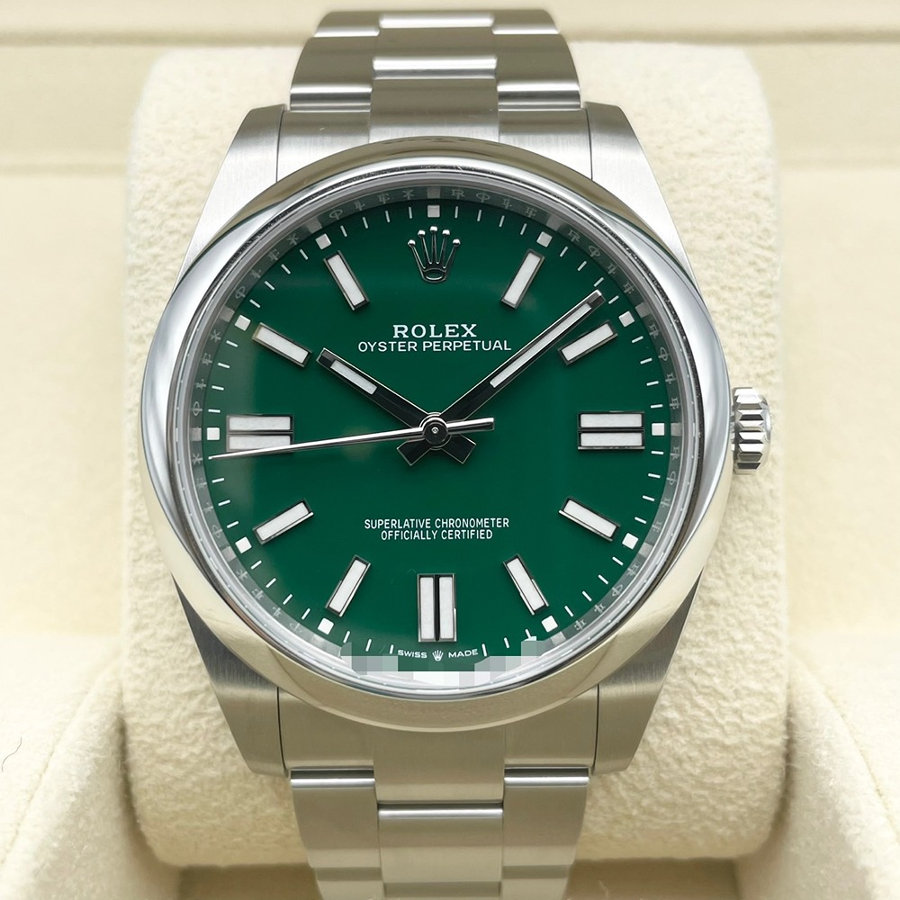 ロレックス オイスターパーペチュアル 124300は、クラシックなデザインと高精度の技術が融合した逸品です。鮮やかなグリーンの文字盤は、日常使いにも特別な日にも映えることでしょう。直径41mmのステンレススチール製のケースは、シンプルながらも存在感があり、どのようなスタイルにも合わせやすい魅力があります。ロレックスの中でも特に注目されているモデルのひとつであり、時を刻むたびにその価値をより一層感じることができるでしょう。所有する喜びをぜひご体験ください。