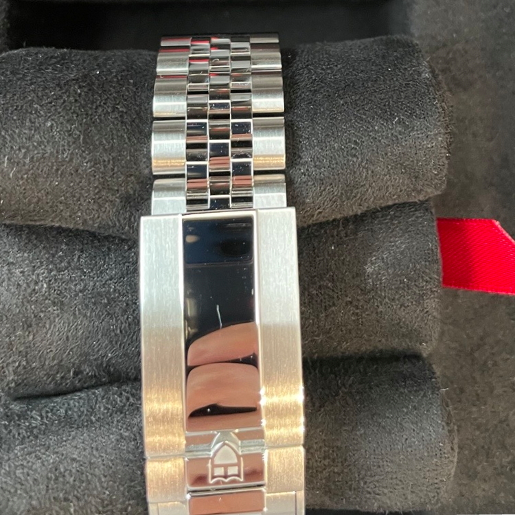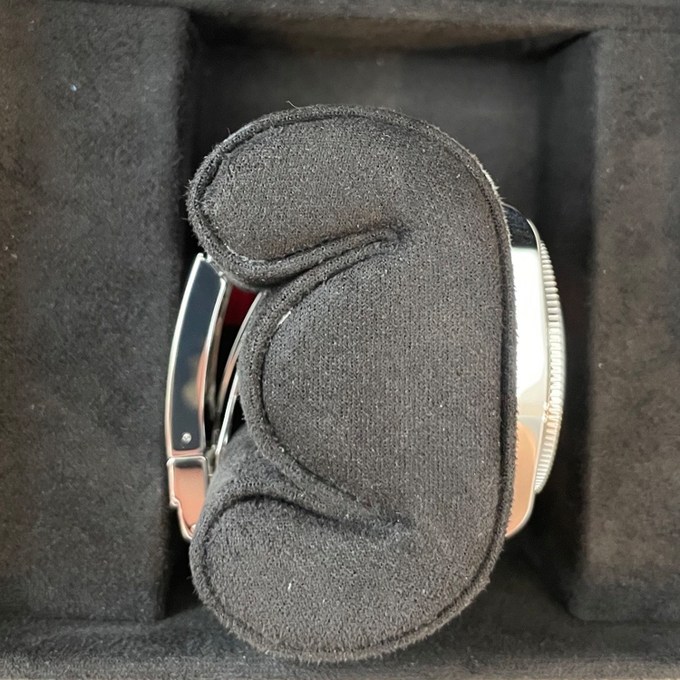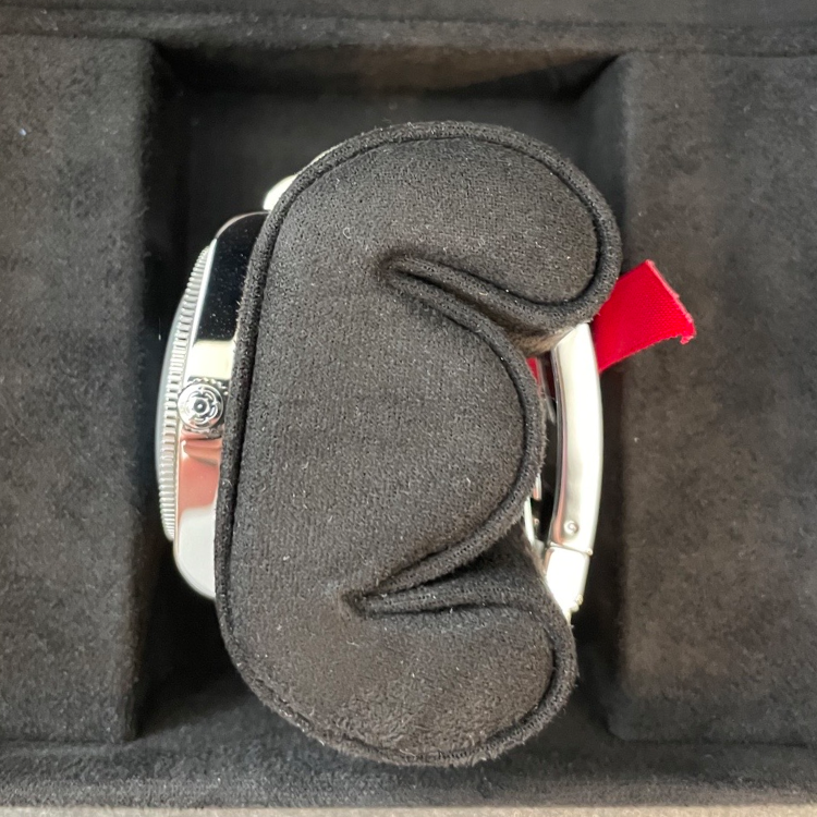 バックルの鏡面部分に保管に伴う微小のスレがあります。写真ではわかりやすいように黒背景になるように取りました。実際にはそこまで深い傷ではありません。 |