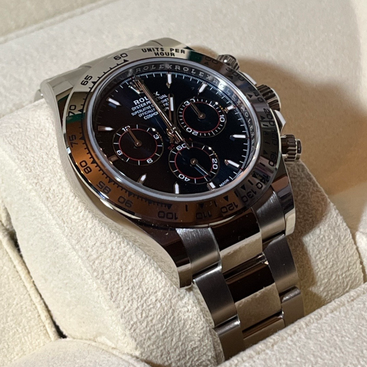 | 出品説明 | 出回りの少ない新作デイトナです。2025年8月下旬の最新ギャラです。撮影のために開封しただけの未使用品です。購入時にコマ調整はされていますが、もちろん余りコマも付属します。 |
