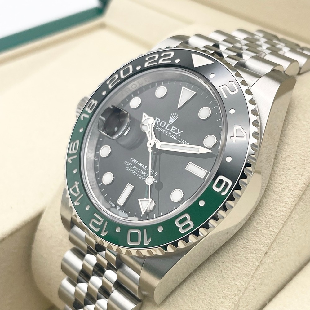 ロレックス GMTマスターⅡ 126720VTNRは、時計愛好者から高い評価を受けるアイコニックなモデルです。ブラックの文字盤にダイヤルでデュアルタイムゾーンを表示し、世界を飛び回る人々に最適です。ステンレススチール製の頑丈なケースとブレスレットは、日常の使用に耐えうる強靭さを誇りつつ、その洗練されたデザインでどんなシーンにも調和します。40mmのケースは、控えめながら存在感を放ち、いつでもどこでもスタイリッシュであり続けるためのパートナーです。