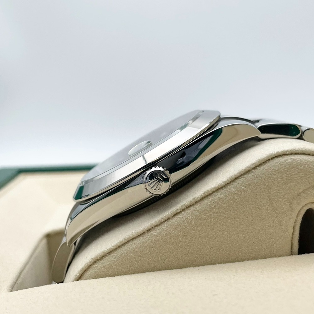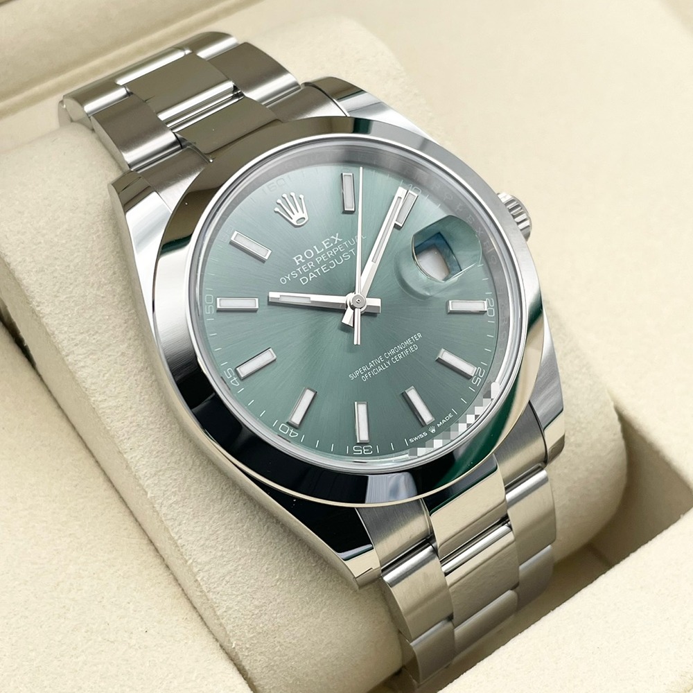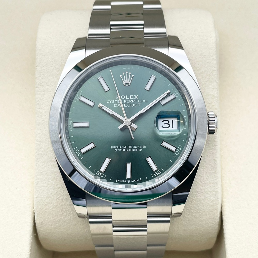 ロレックス デイトジャスト 126300は、卓越した技術力と高度な精密性を誇る時計製品の一つ。ミントグリーンの文字盤は、見る角度や光の条件によって様々な表情を見せ、腕元に爽やかな印象を与えます。ステンレススチール素材で作られた41mmのケースは、磨かれたサテン仕上げが施され、耐久性と洗練さを同時に提供します。この時計は、ビジネスシーンやカジュアルシーンを問わず、あらゆる場面で腕元を彩る逸品です。信頼のロレックスムーブメントは抜群の正確さを約束し、長年にわたってその価値と品格を維持します。ロレックスを纏うことで得られる誇りと喜びを、ぜひあなたの元に。