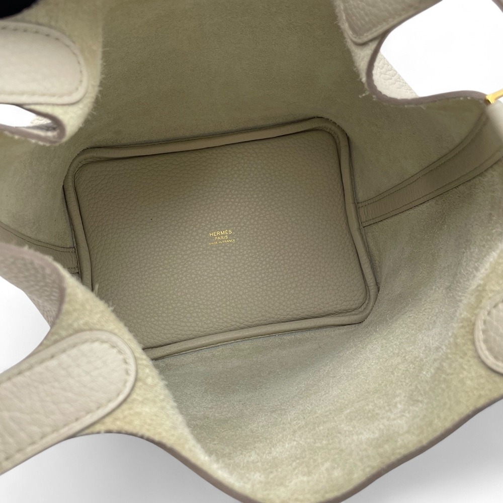 エルメス ピコタンロックは、その機能性とデザイン性を兼ね備えた逸品です。上質なトリヨンクレマンス素材は柔らかな手触りで、耐久性も高く、毎日のご使用にも最適です。こちらのPMサイズは、日常の必需品を収納するのにぴったりで、スタイリッシュなアクセントになります。べトンカラーはシックで、どんな装いにも合わせやすく、大人の女性にも男性にもおすすめです。