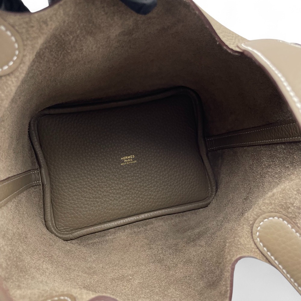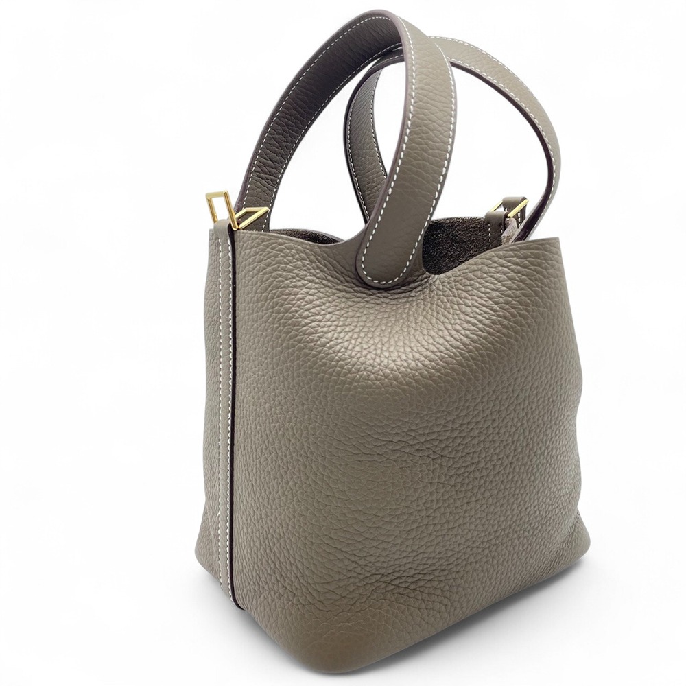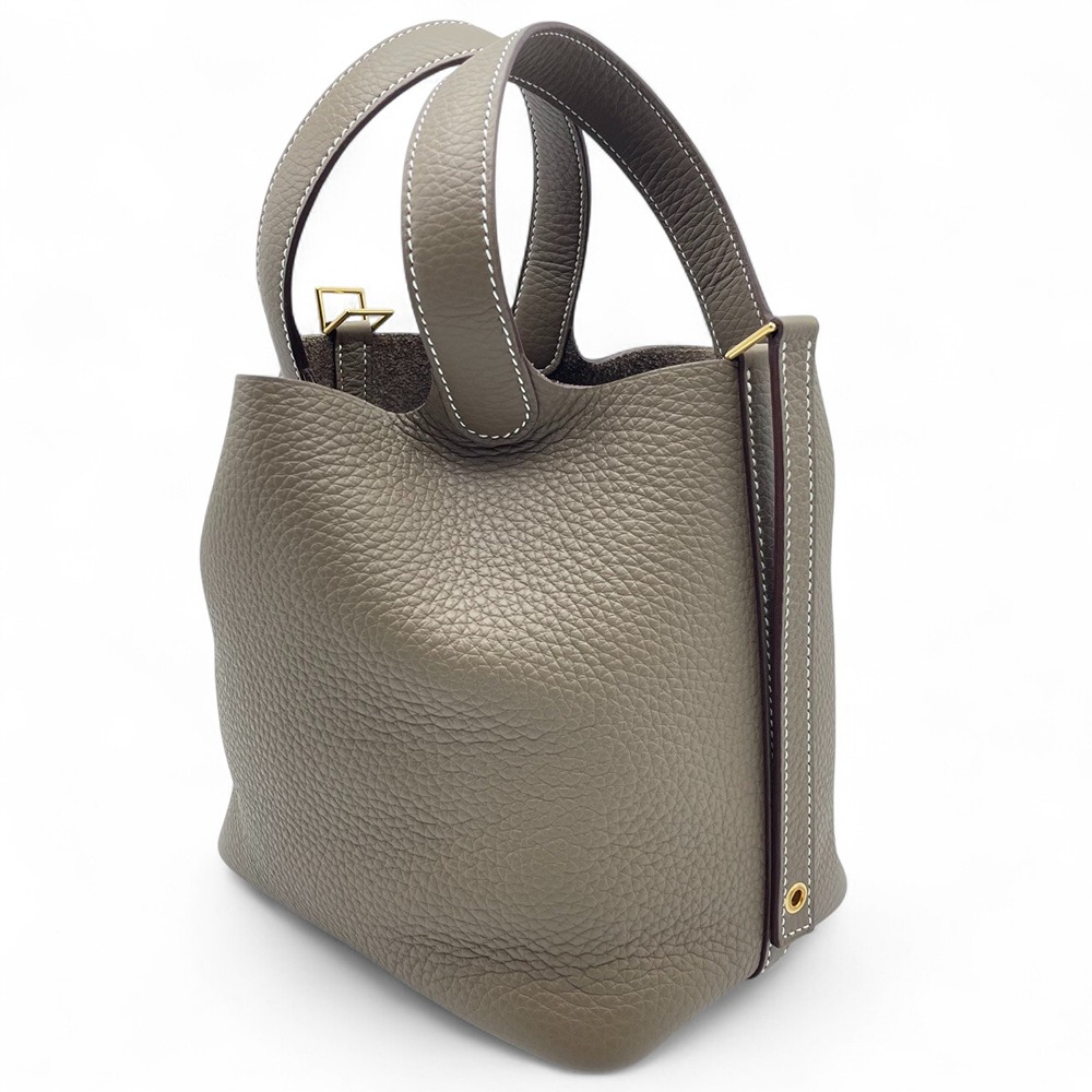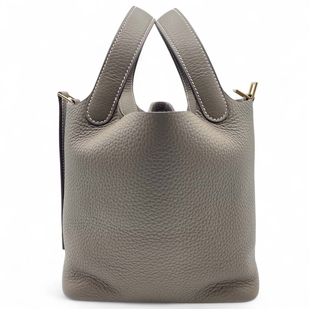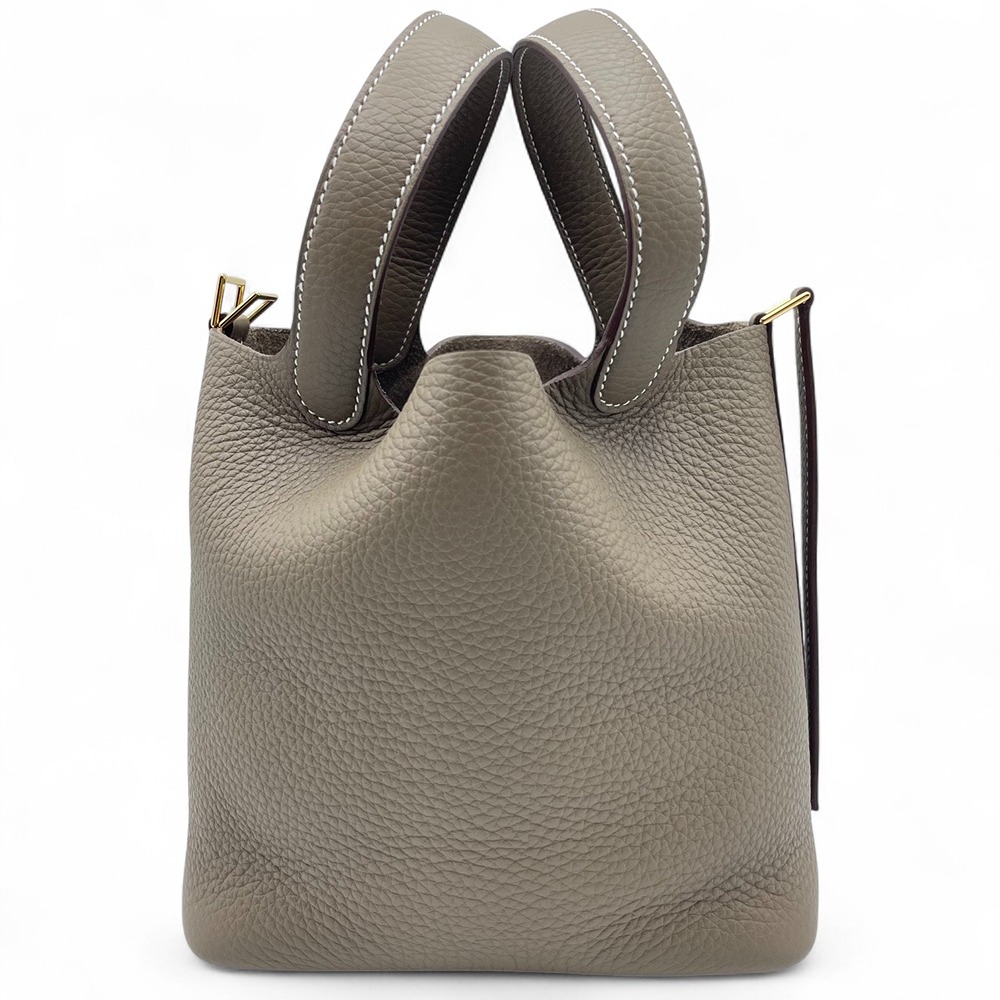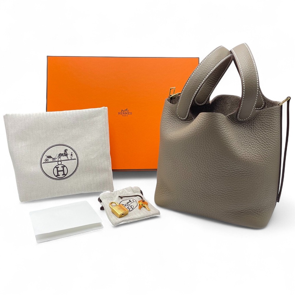 エルメスの「ピコタンロック」は、そのエレガントで洗練されたフォルムと機能性を兼ね備えたバッグです。カラーは上品なエトゥープ、素材にはしなやかで丈夫なトリヨンクレマンスを使用しており、日常使いから特別なシーンまで幅広く活躍します。サイズPMはコンパクトながらも収納性に優れ、ちょうど良い使い勝手です。このバッグは、シンプルなデザインの中に計算された美しさがあり、持つ人の品格を自然と高めてくれます。自分へのご褒美や大切な人への贈り物としても最適です。