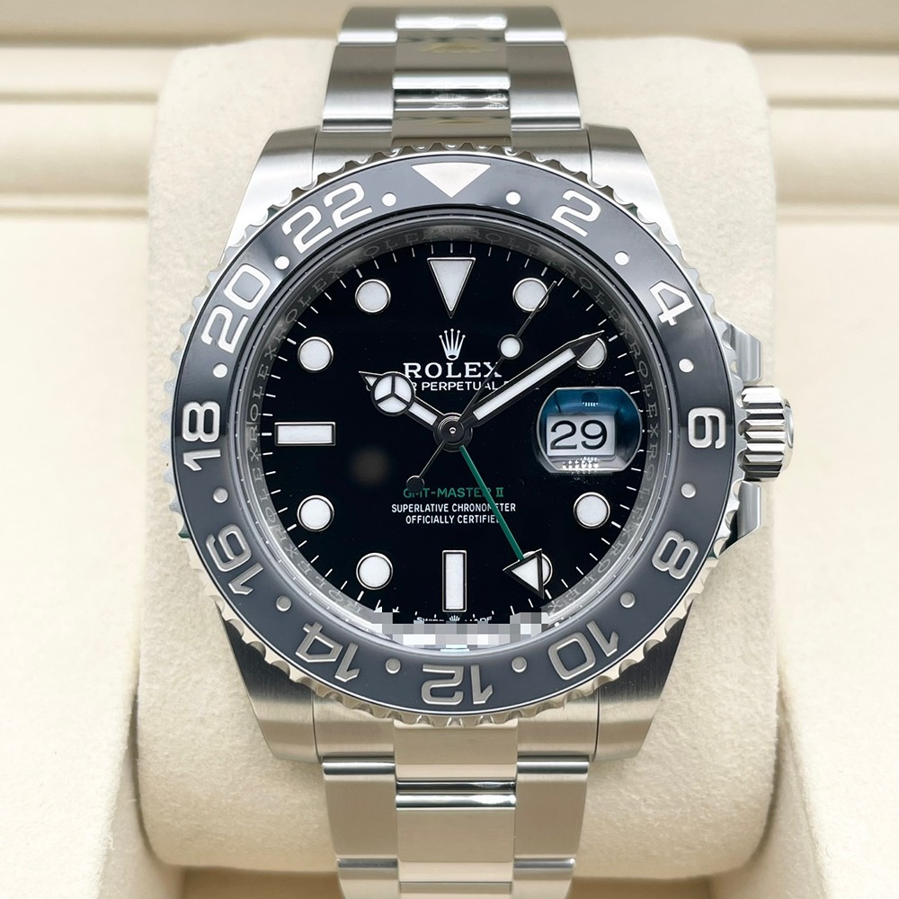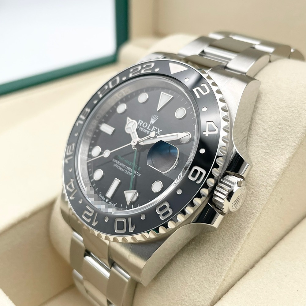 ロレックスのGMTマスターⅡは、時計愛好家や多くの旅行者に愛され続ける名作です。ステンレススチールを用いた堅牢なケースに、シンプルかつエレガントなブラックの文字盤が上品に調和します。40mmのサイズ感は男女問わず多くの方にフィットし、日常使いから特別なシーンまで様々な場面で活躍します。デュアルタイム機能を搭載しているため、ビジネスマンやトラベラーにも最適です。このGMTマスターⅡは、その卓越した性能と洗練されたデザインで、あなたの腕元を一層引き立たせます。