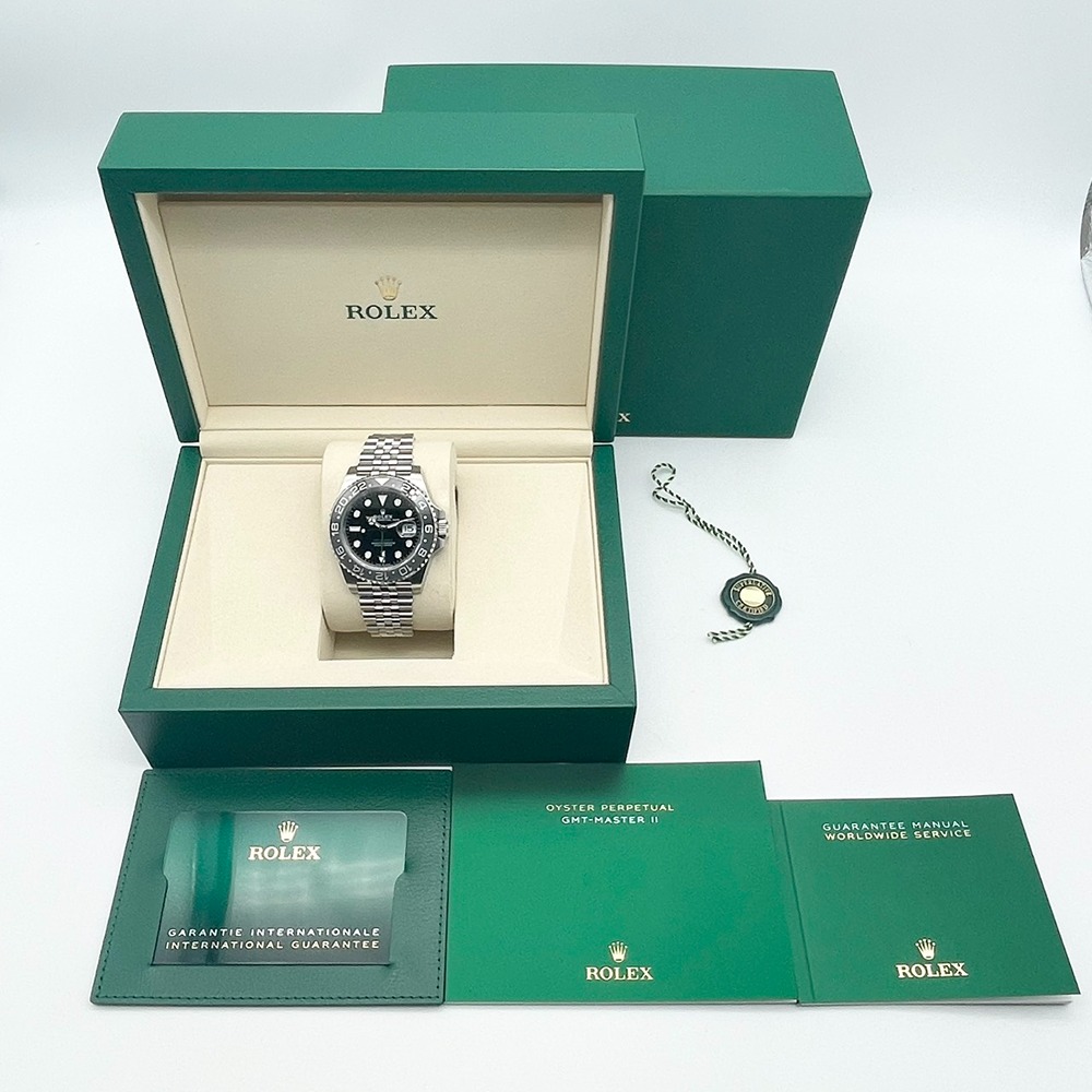 ロレックスのGMTマスターⅡは、時計愛好家に愛され続ける名作です。ステンレススチールを用いた堅牢なケースに、シンプルかつエレガントなブラックの文字盤が上品に調和します。40mmのサイズ感は多くの方にフィットし、日常使いから特別なシーンまで様々な場面で活躍します。このGMTマスターⅡは、その卓越した性能と洗練されたデザインで、あなたの腕元を一層引き立たせます。