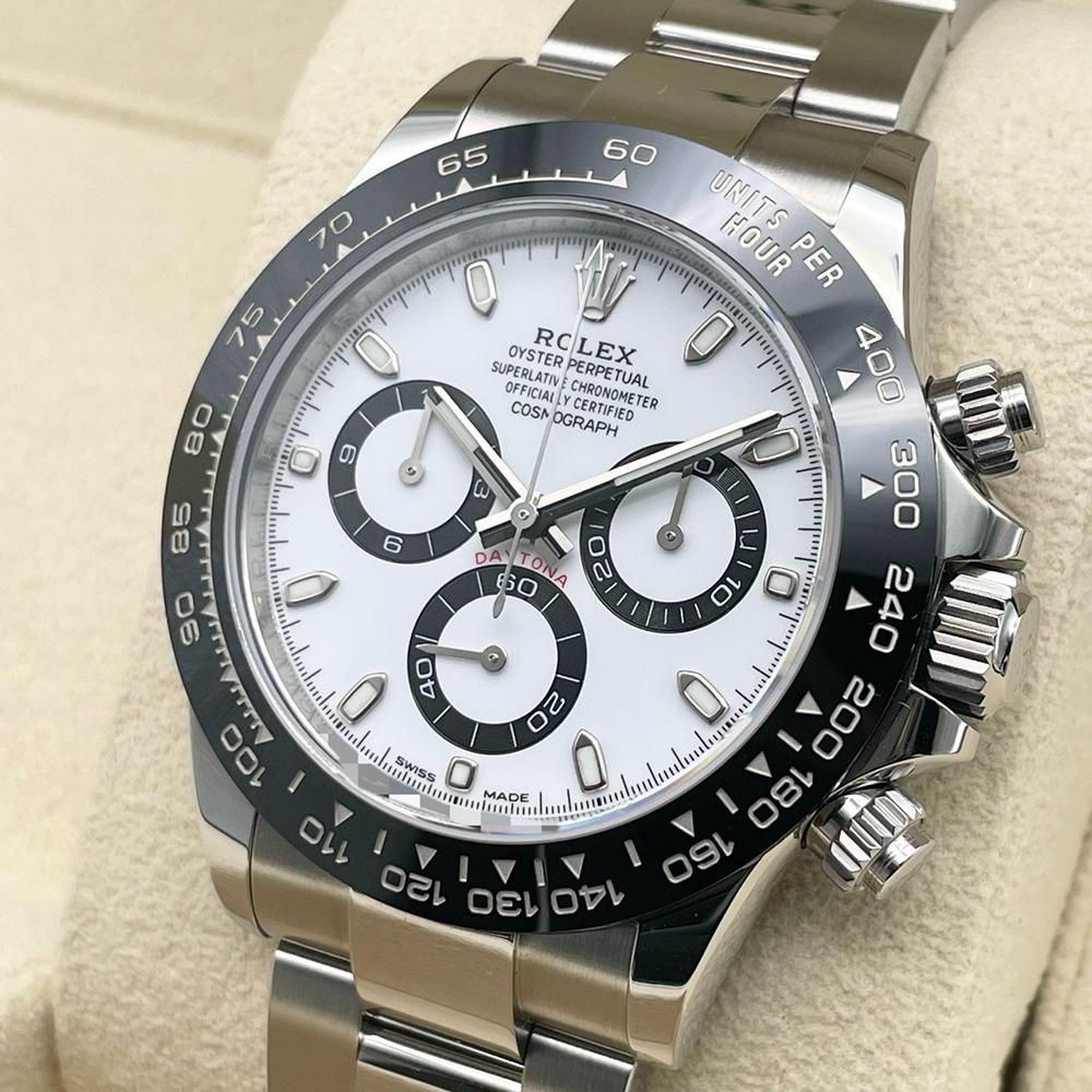 ロレックス デイトナ 116500LNは、洗練されたデザインと優れた精度で、世界中の時計愛好家から非常に高く評価されています。このモデルは、ステンレススチールケースとホワイトの文字盤が特徴的で、視認性に優れているだけでなく、そのスタイリッシュな外観が魅力です。また、40mmのケースサイズは、様々なシーンで活躍できるバランスの取れた大きさとなっております。耐久性にも優れており、日常の使用からフォーマルな場面まで幅広くお使いいただけます。この機会にぜひ、お求めください。