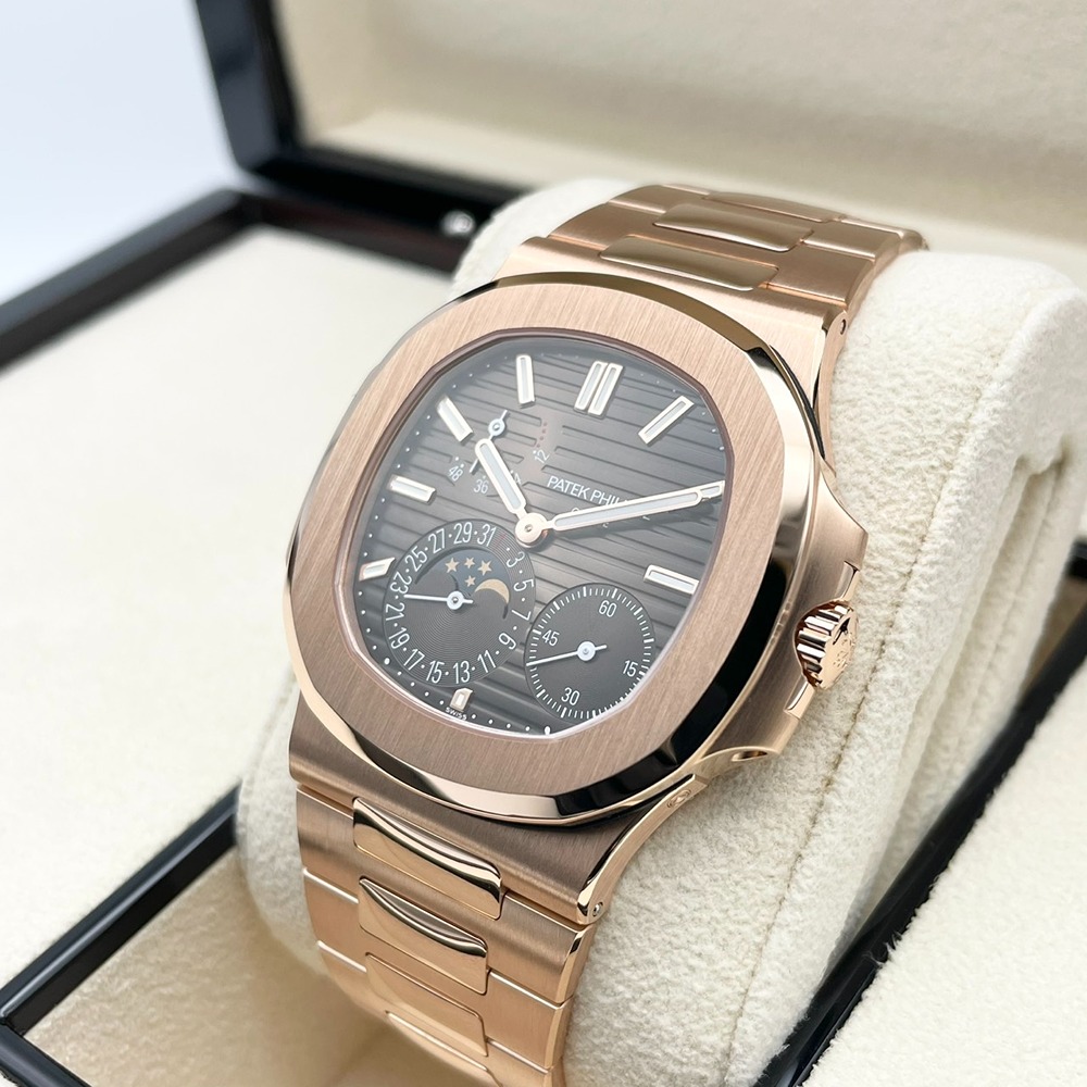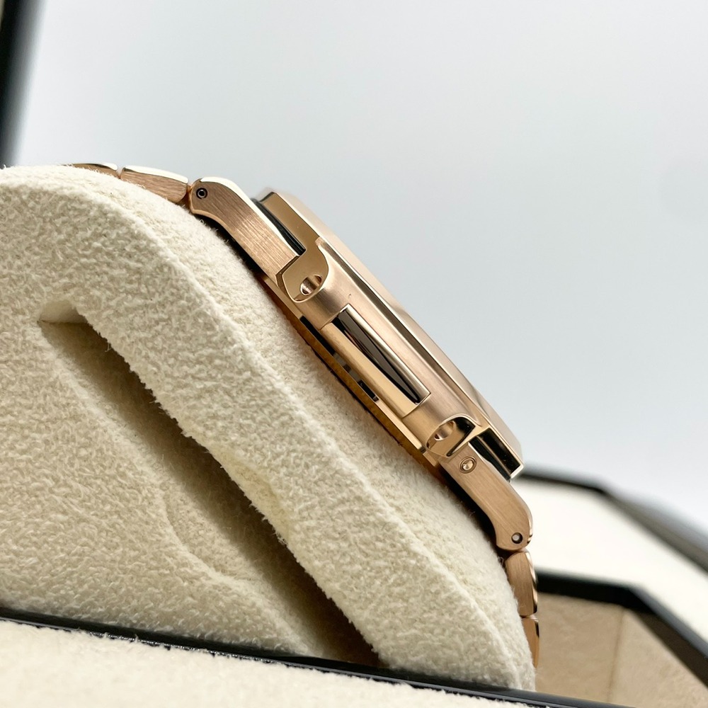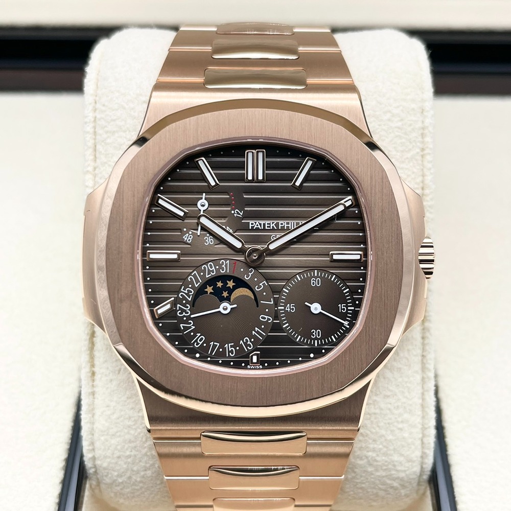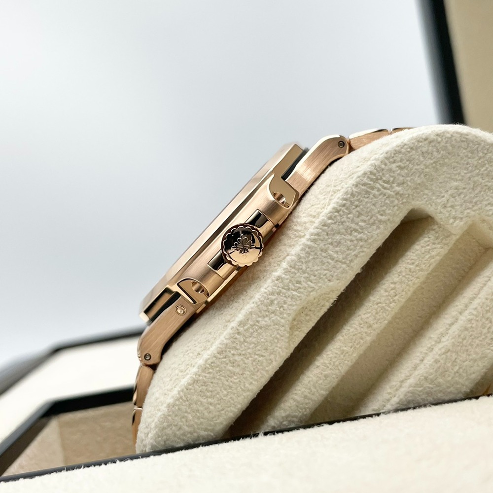 パテックフィリップのノーチラス 5712/1R-001は、高級時計の象徴ともいえるデザインと卓越した技術が融合した絶品のタイムピースです。18Kローズゴールドが醸し出す重厚感と、その高級感を引き立てるダイヤルの美しい配置が、持つ人に圧倒的な洗練をもたらします。独創的な設計と高度な技術によるムーブメントは、正確な時間の調律を保証し、所有感を一層高めます。他のモデルには無い個性的な魅力があり、時を刻むたびに所有者に特別な瞬間を提供します。