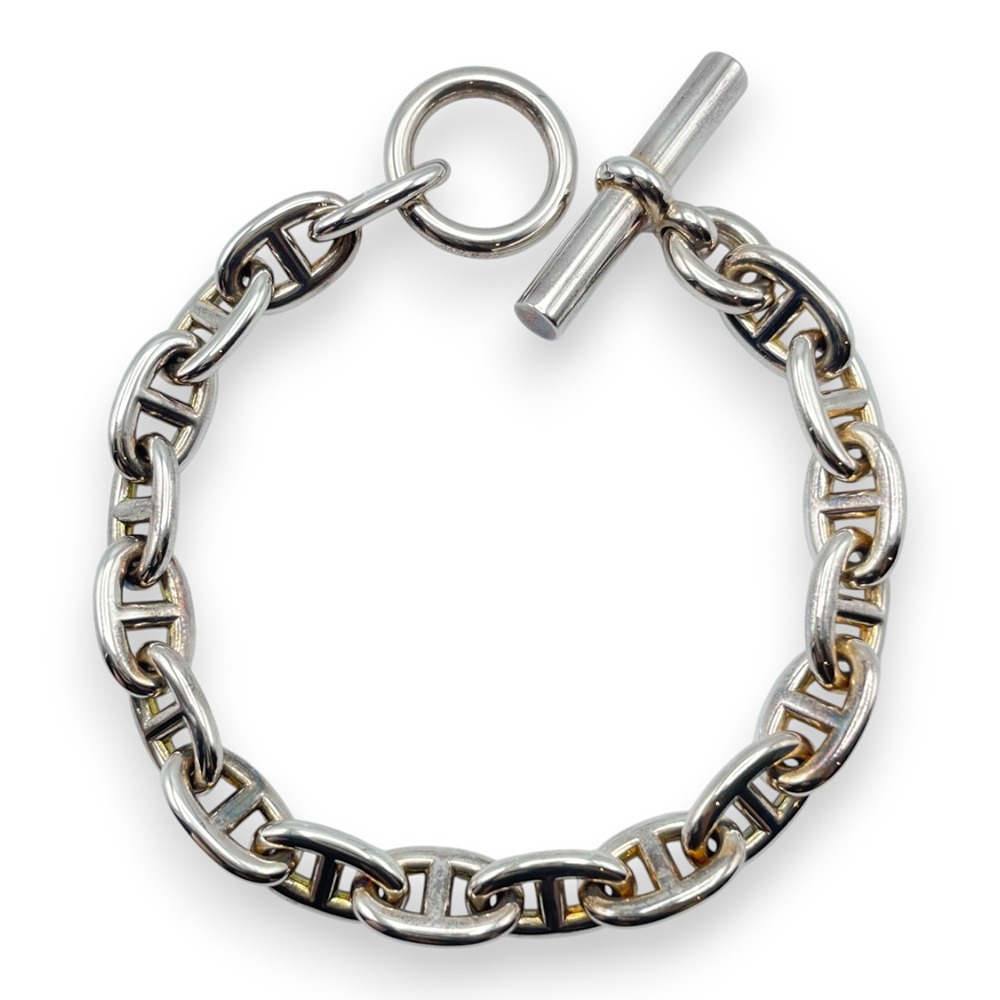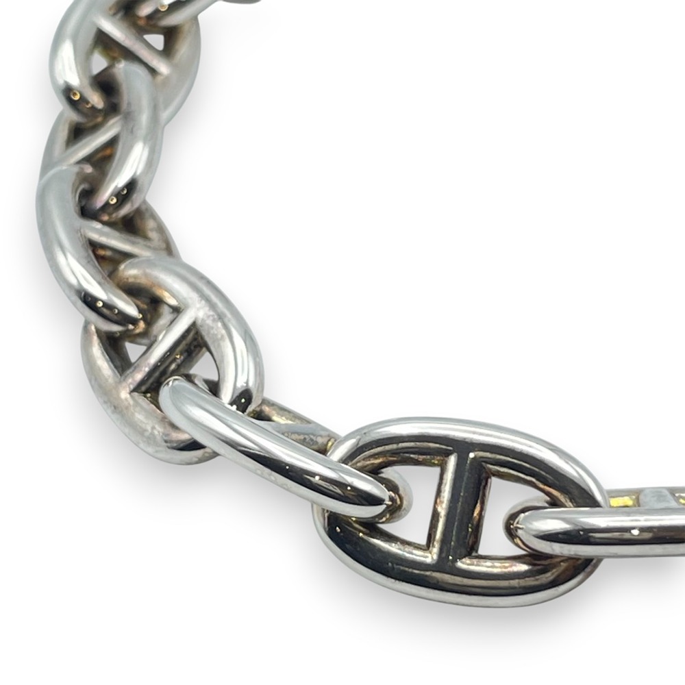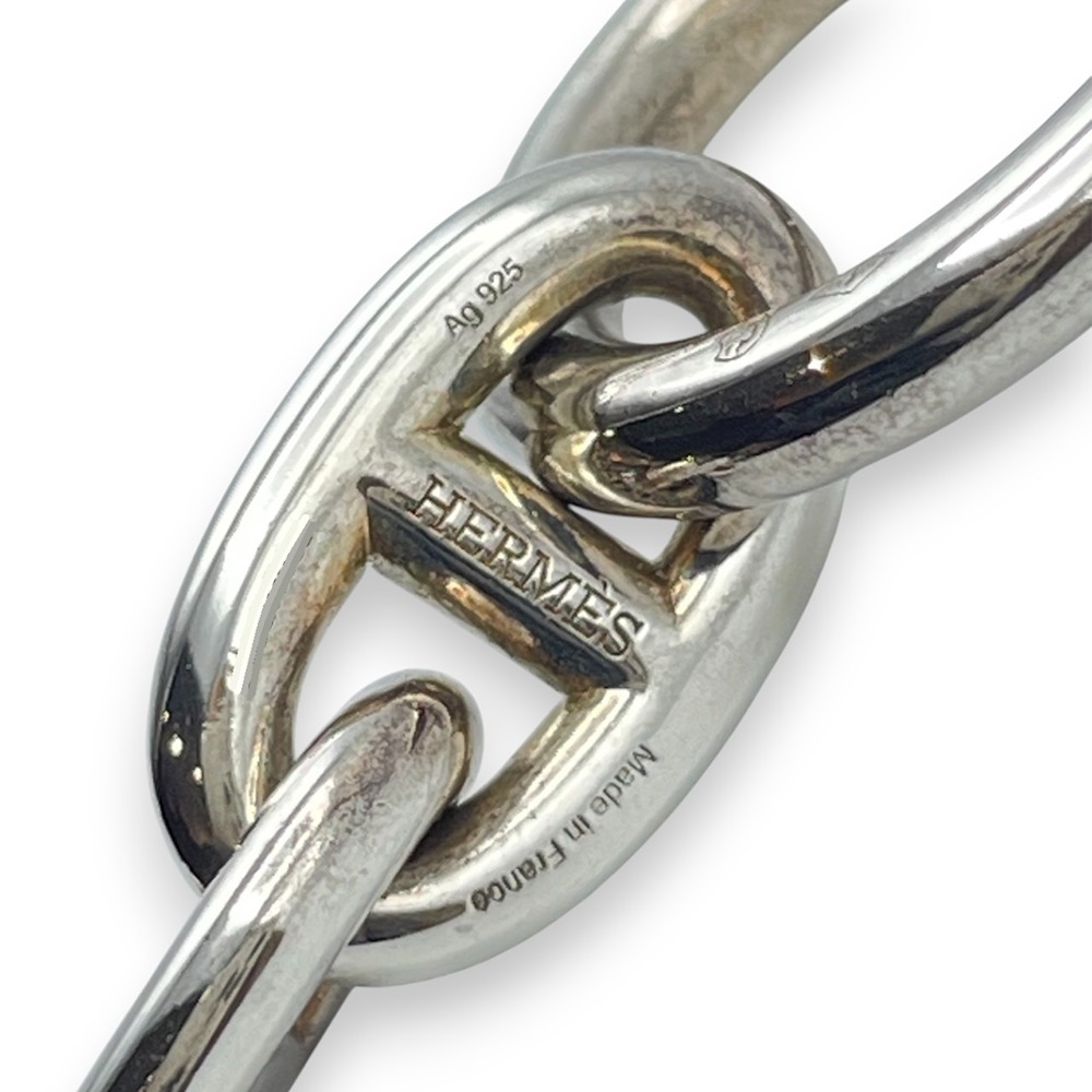 エルメスのシェーヌ・ダンクル MMは、洗練されたシルバーの輝きが魅力のジュエリーです。このチェーンデザインはエルメスの伝統的な職人技術を活かし、細部にまで高級感が溢れています。18のリンクが繊細に繋がることで、シンプルでありながら存在感を放ち、どのようなファッションにも合わせやすい逸品です。デイリーユースはもちろん、特別な場面でも活躍するこのシェーヌ・ダンクルは、貴方のスタイルに一層の洗練を加えます。