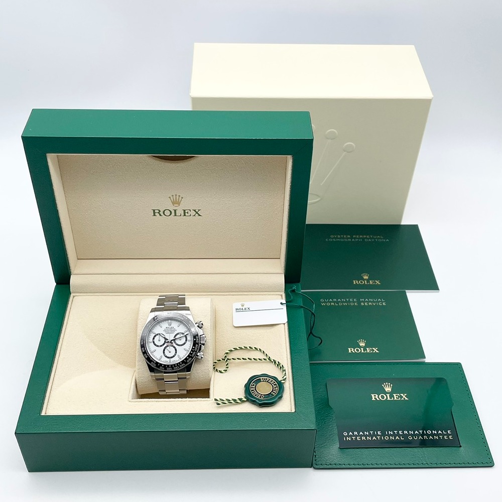 ロレックスの代表的なモデル、デイトナ126500LNは、そのエレガントなデザインと高い耐久性で知られています。ホワイトの文字盤は、シックで洗練された印象を与え、ステンレススチールの素材は頑丈さと美しさを兼ね備えています。スポーティでありながらも高級感を醸すこの時計は、オンオフ問わず様々なシーンで活躍します。40mmのサイズ感は、腕元になじみ、自然なフィット感を提供します。あなたのスタイルに華を添える逸品を、ぜひ手に取ってみてください。