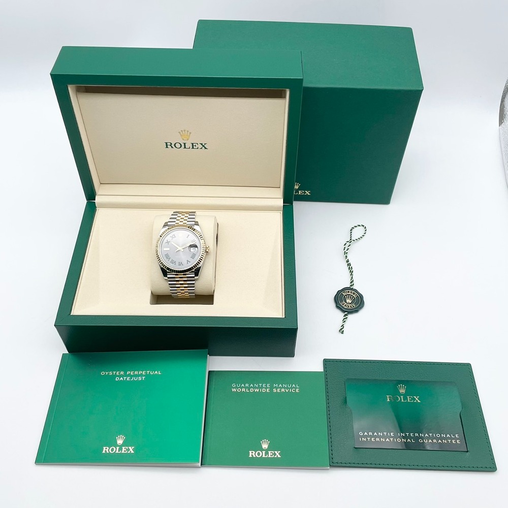 ロレックスのデイトジャストは、時計業界でも一際目を引く存在です。このエレガントなモデルは、高貴なスレートローマンカラーが印象的で、どんな装いやシーンにもマッチする万能な一品です。ケースサイズは41mmで、ステンレススチールとイエローゴールドの組み合わせが、腕元に一層のラグジュアリー感と優雅さを演出します。この時計は、正確な時刻を保持するだけでなく、所有することへの誇りを感じさせる逸品です。日常を上質に変えるロレックス デイトジャストをぜひ手に入れてください。