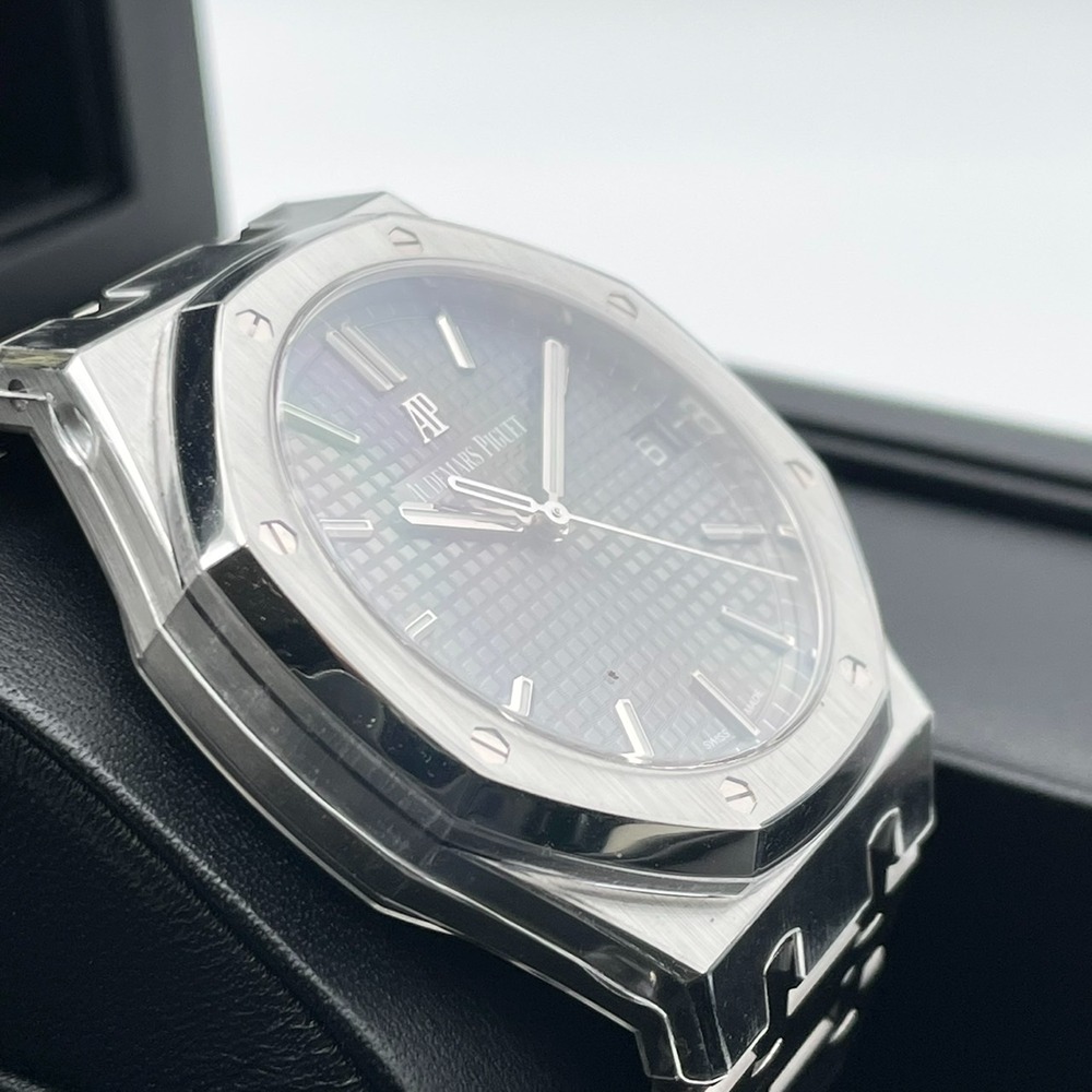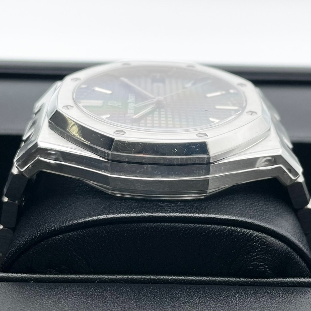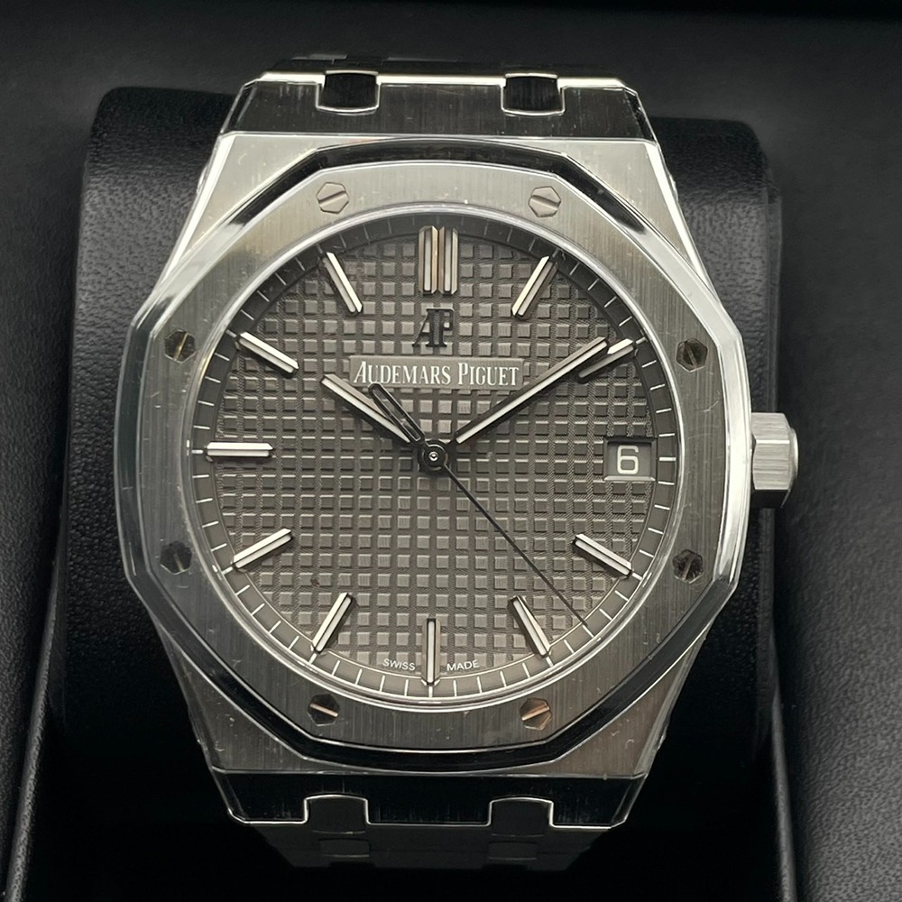 オーデマピゲのロイヤルオークは、その洗練されたデザインと技術力で世界中の時計愛好家を魅了しています。ステンレススチールの素材は、知的でありながら軽やかに腕元を飾ります。41mmのケースサイズは存在感を与える一方で、日常のスタイルにも最適です。シルバーの文字盤はどんなシチュエーションにもマッチし、洗練された魅力を引き立てます。高級感溢れるデザインながら、耐久性にも優れた一品です。ご自身のタイムピースコレクションに加えることで、品格とスタイルが備わること間違いありません。