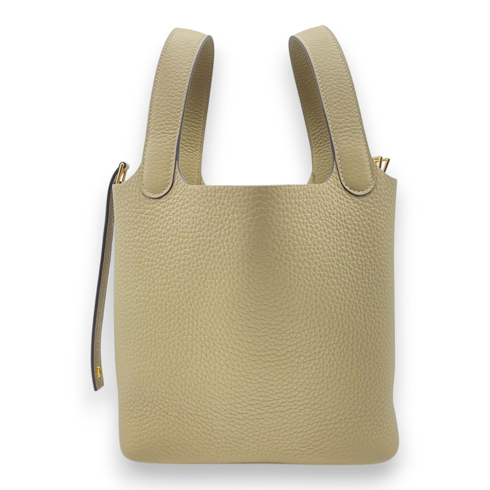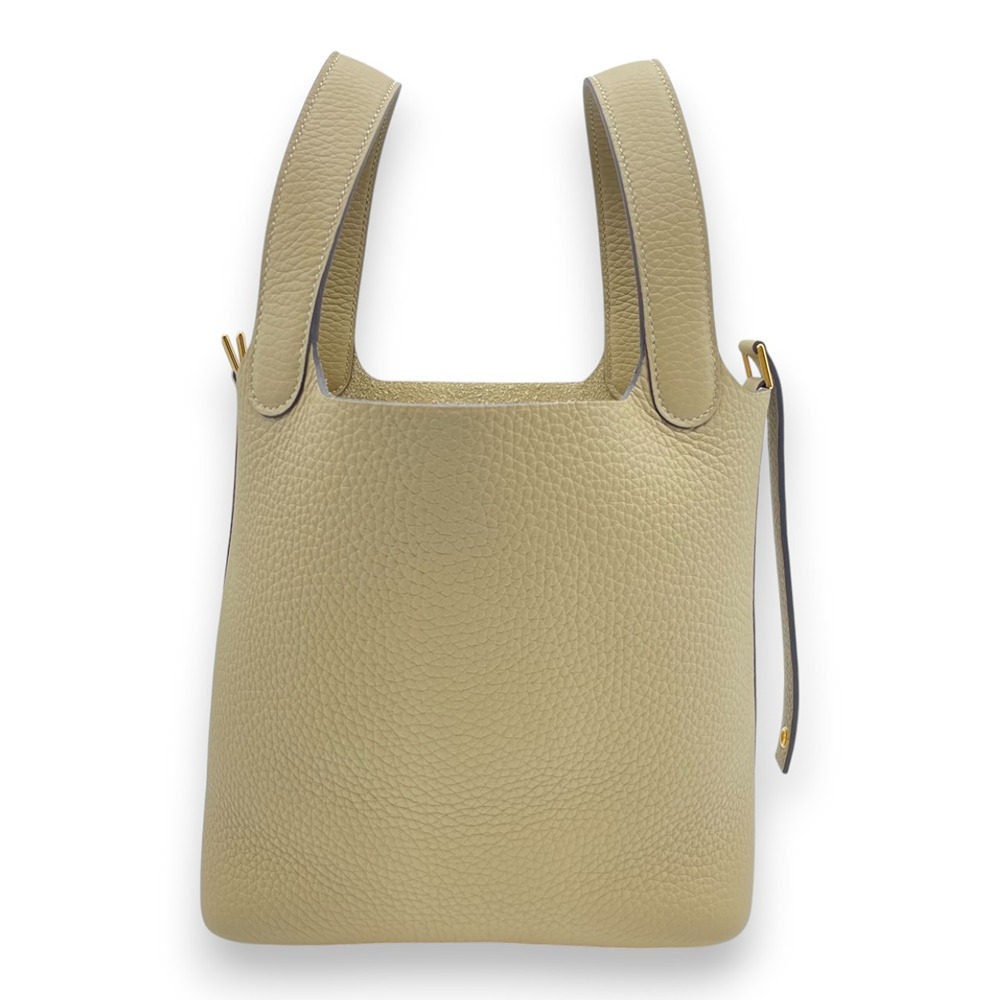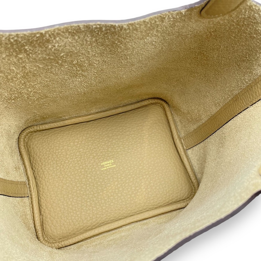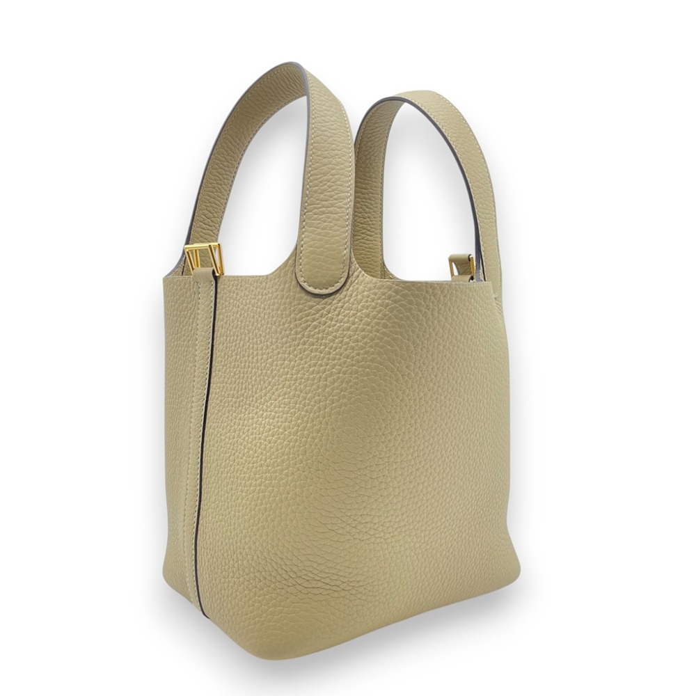 エルメスのピコタンロックは、そのシンプルで洗練されたデザインが魅力の一つとして、多くの女性に愛され続けています。トレンチカラーは、落ち着いた優雅な印象を与え、どんな装いにもマッチしやすい色合い。また、トリヨンクレマンス素材を使用することで、触り心地の良さと長年の使用にも耐える頑丈さを持ち合わせています。PMサイズは、日常使いにも最適な大きさで、必需品をしっかりと収納可能です。この機会にぜひ、日常を彩るエレガントな相棒を手に入れてください。
