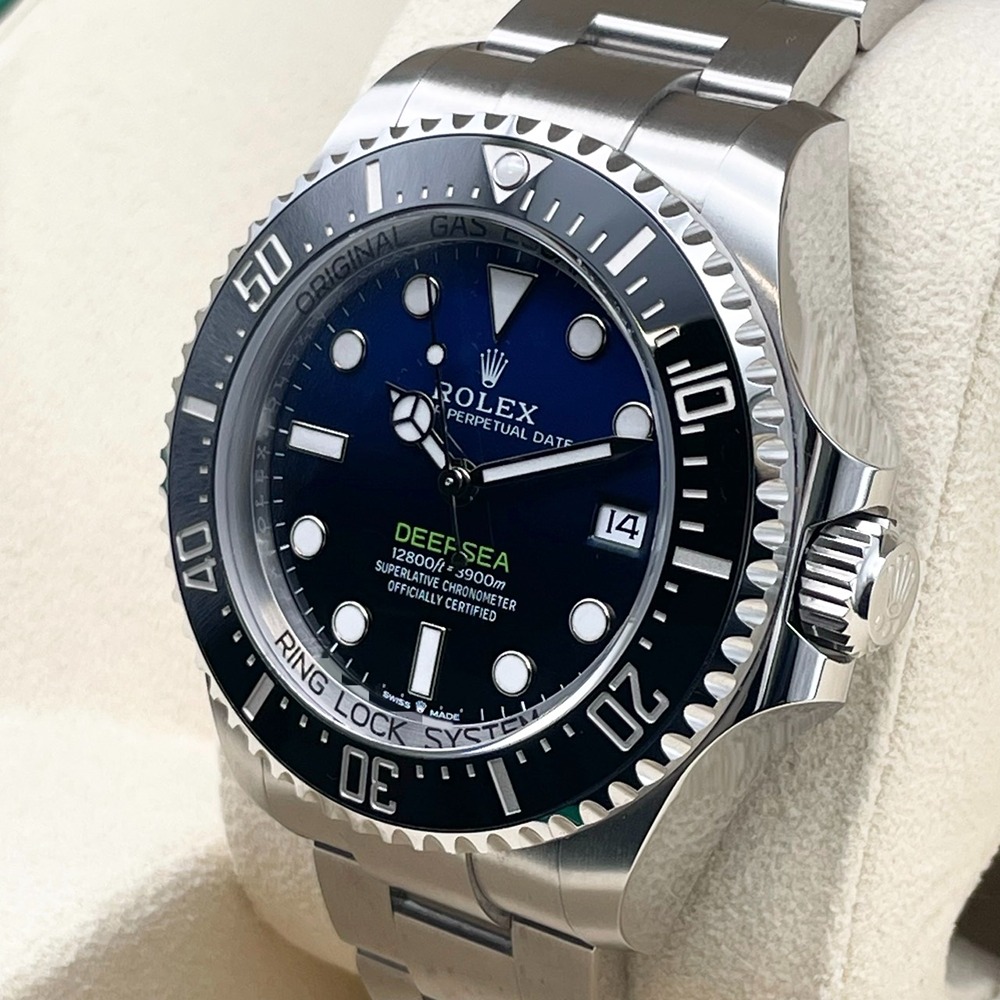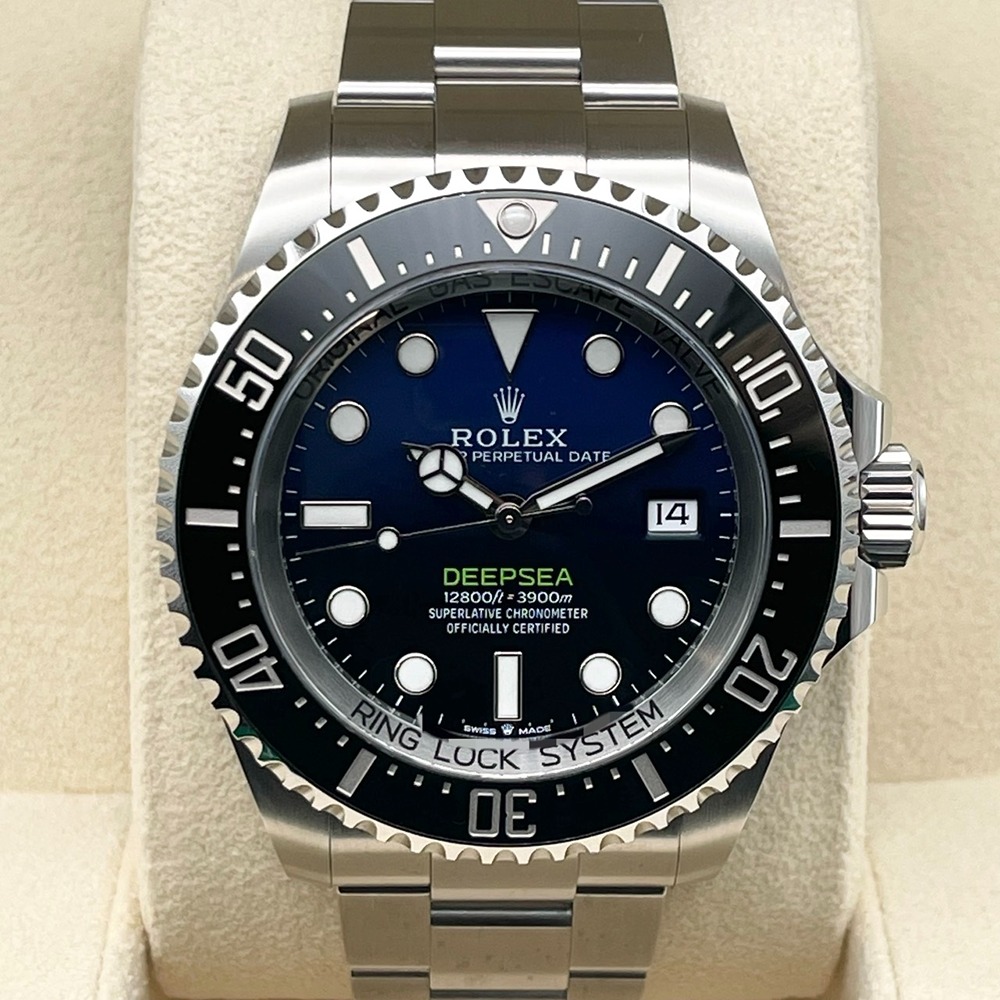 ロレックスきってのプロフェッショナルダイバーズ「ディープシー 136660」。深海の闇から水面へと立ち上る光を表現したDブルー文字盤は、眺める角度によって表情を変えるロマンあふれる一本です。44mmの堂々たるケースと厚みのあるサファイアクリスタルが圧倒的な存在感を放ちながら、ステンレススチール特有の重厚感と高級感を両立。機能面でも高い防水性能と堅牢なムーブメントを備え、日常からアクティブシーンまで安心してお使いいただけます。2024/12日付の保証書付き・中古美品コンディションのため、コレクションとしても非常に魅力的なおすすめの一本です。