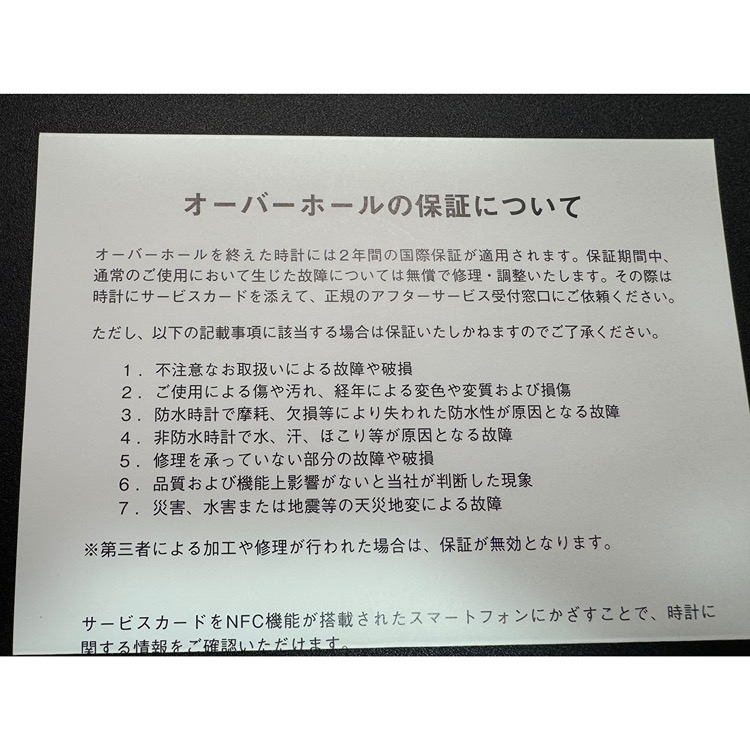 ギャランティーは2019年ですが、オーバーホール直後なので極めて良いコンディションです。