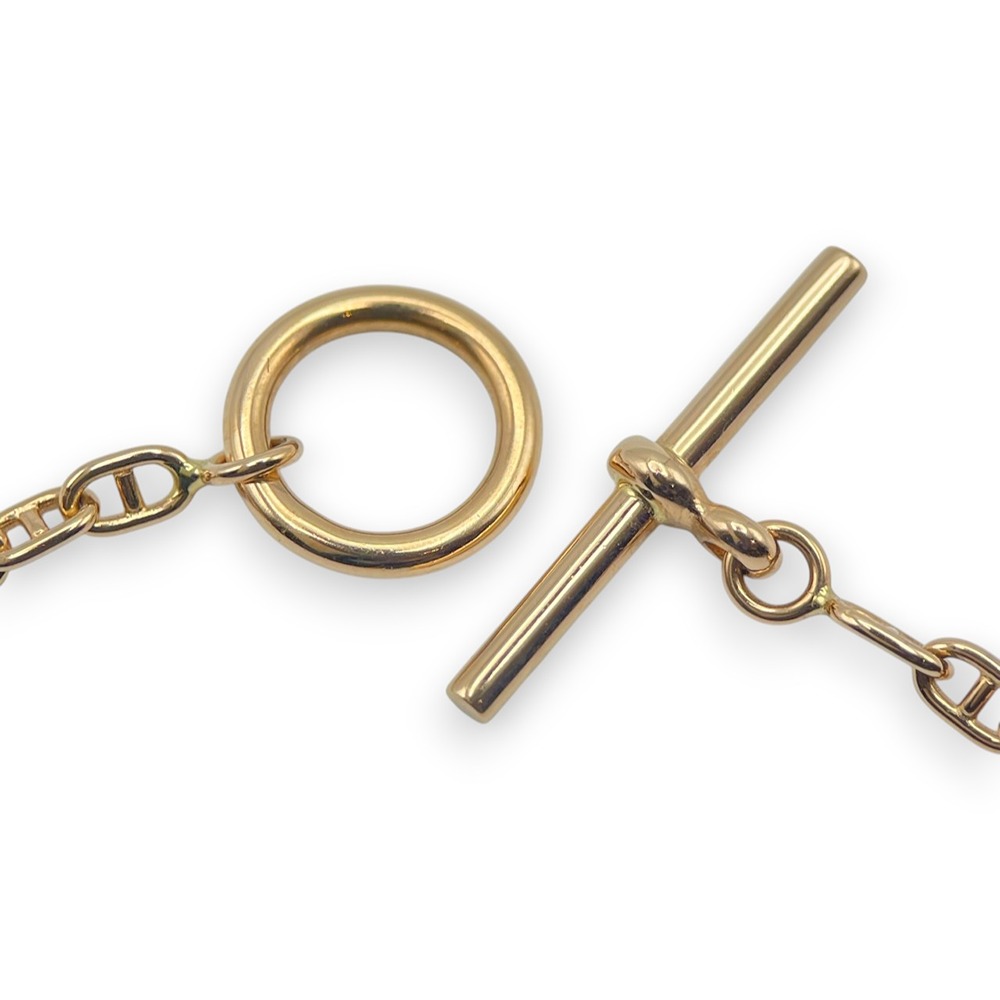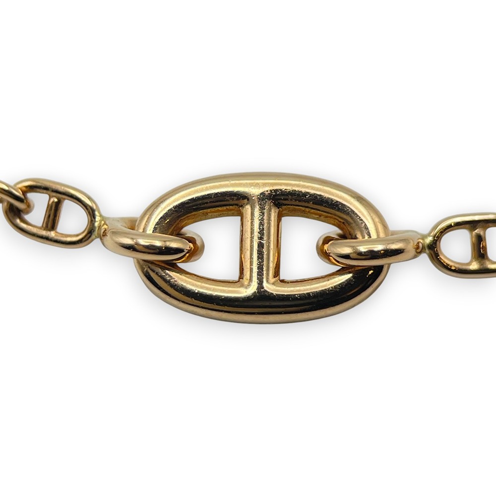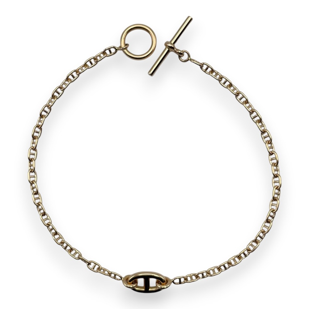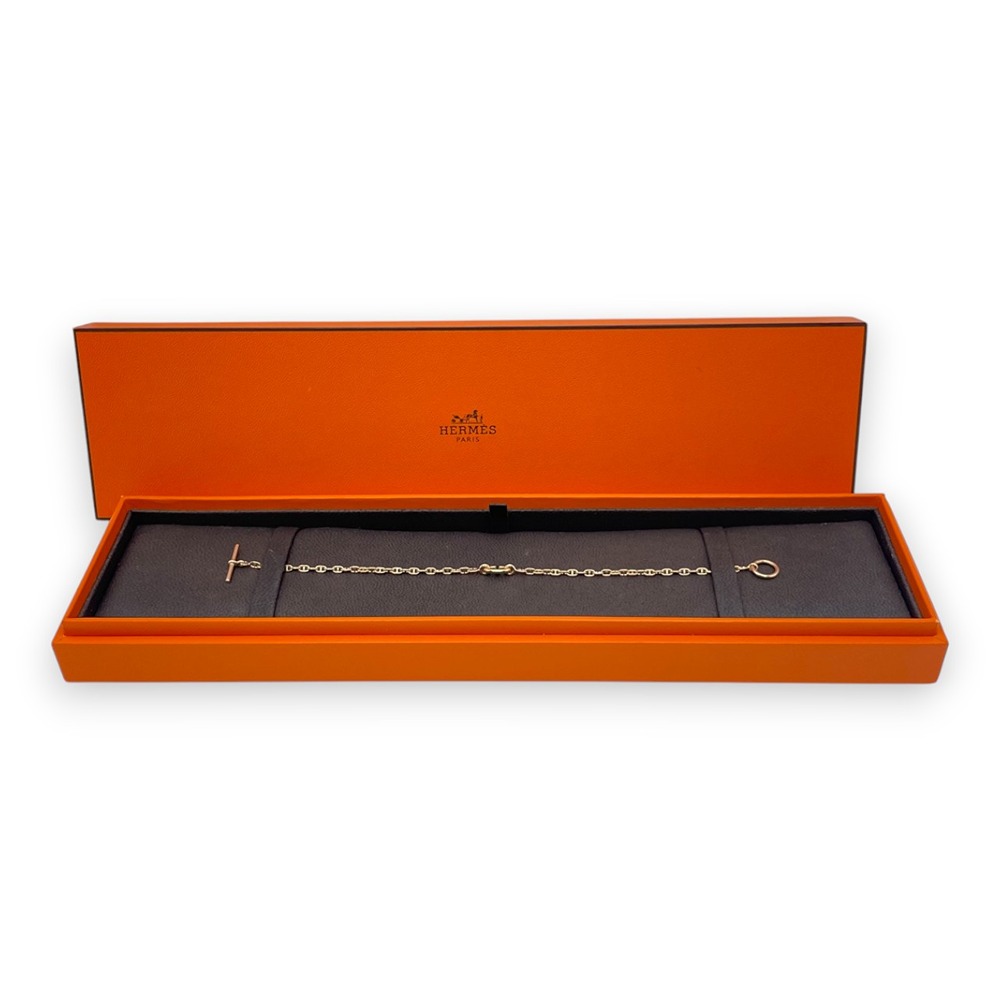 エルメスを代表するチェーンモチーフ「ファランドール」のブレスレットです。繊細なチェーンにあしらわれたHモチーフが、さりげなくブランドの世界観を漂わせつつ、主張しすぎない上品な存在感を放ちます。肌馴染みのよいPG素材が、手元に柔らかな煌めきを添え、オンオフ問わず幅広いスタイルにマッチ。単品使いはもちろん、お手持ちのジュエリーとのレイヤードもおすすめの一本です。ご自分へのご褒美はもちろん、大切な方へのギフトにもふさわしいお品物です。