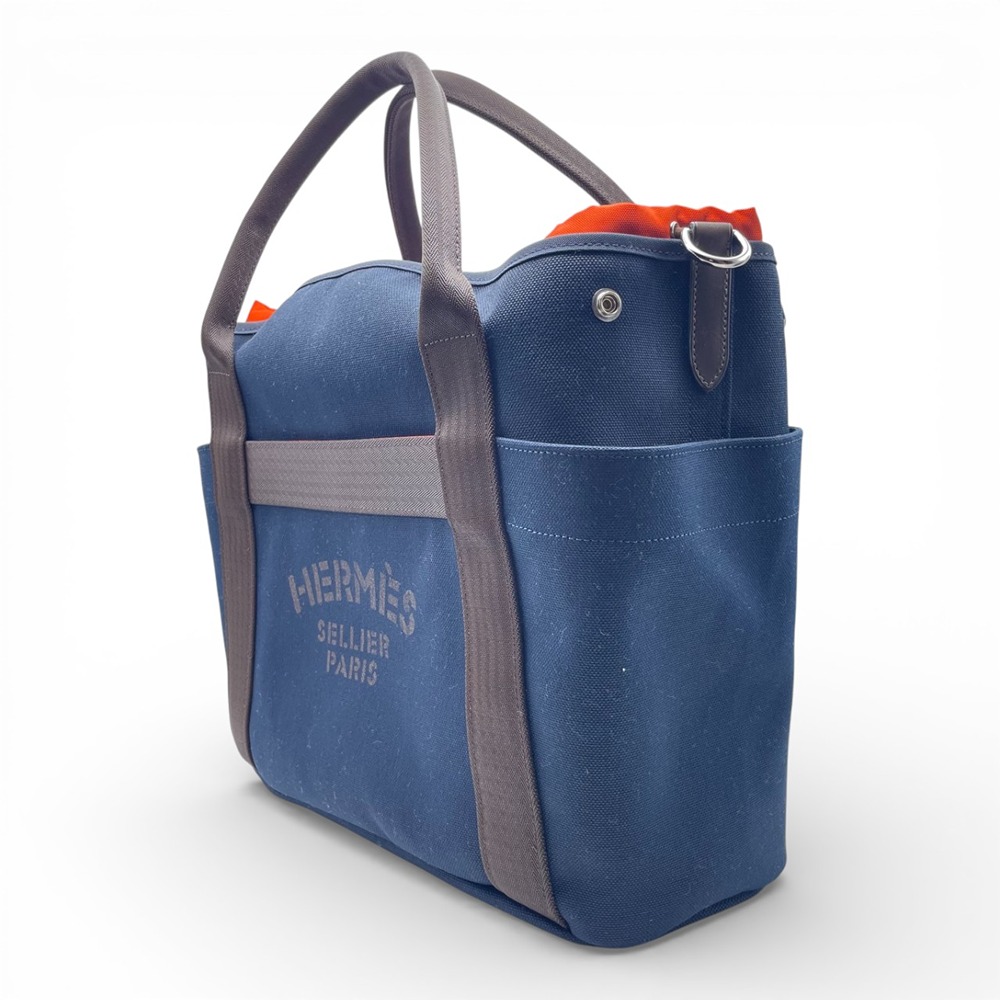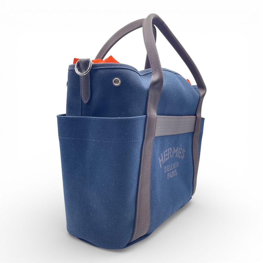 エルメスならではのエスプリが光る「サックドパンサージュ グルーム」。ブルー・ネイビーにフーの差し色が効いた絶妙なカラーバランスは、知的さと遊び心を両立させ、男女問わず洗練されたスタイルを演出します。48のゆとりあるサイズ感は、週末の小旅行やジム通い、ビジネスシーンの出張バッグとしても活躍。軽やかなキャンバスと上質レザーのコンビネーションで、実用性とラグジュアリーを兼ね備えています。カジュアルな装いに一点投入するだけで、こなれたパリシックが完成する一品です。