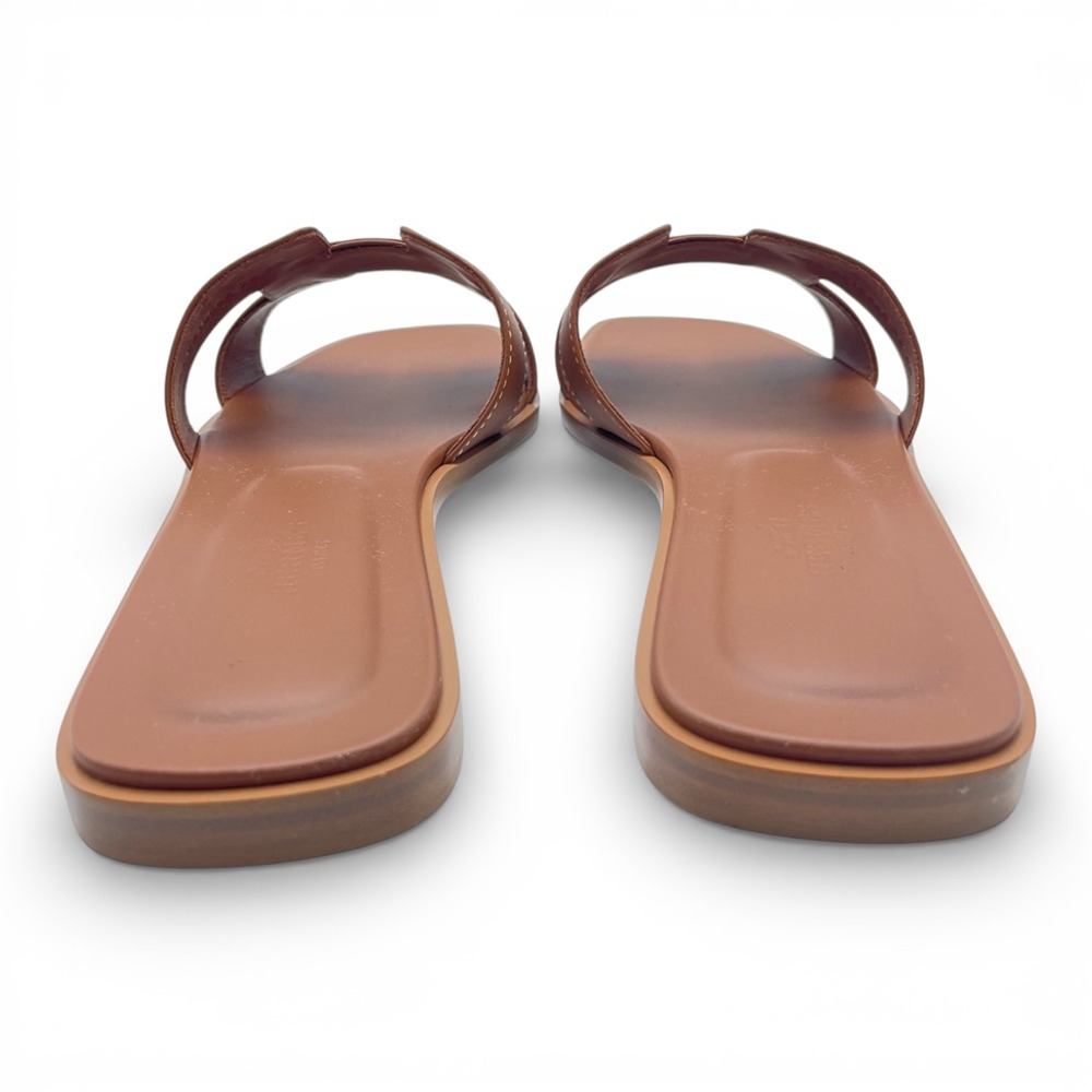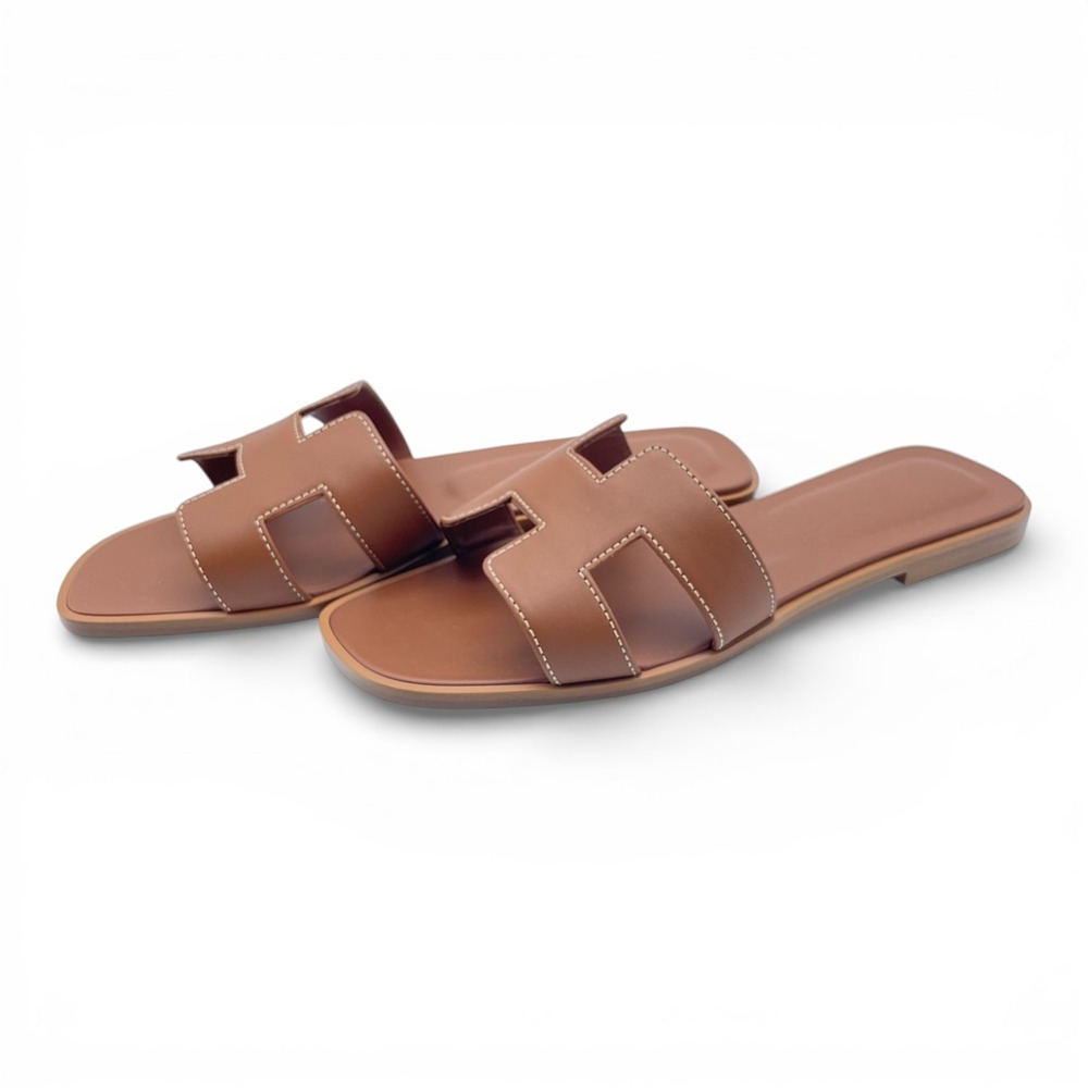 エルメスの名品サンダル「オラン」は、洗練されたHカットのデザインで素足を美しく見せてくれる一足。上品なゴールドカラーは肌なじみがよく、女性はワンピースやデニムに、男性はリゾートスタイルの足元に取り入れるだけで、抜け感のあるラグジュアリーな印象に仕上がります。フラットで歩きやすく、タウンユースからバカンスまで活躍。シンプルでありながら一目でエルメスとわかる存在感は、さりげなく格を示したい方におすすめです。