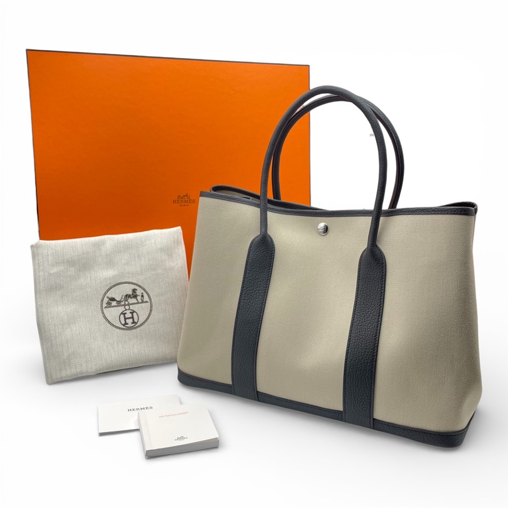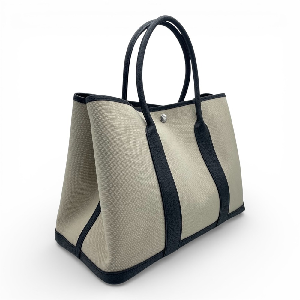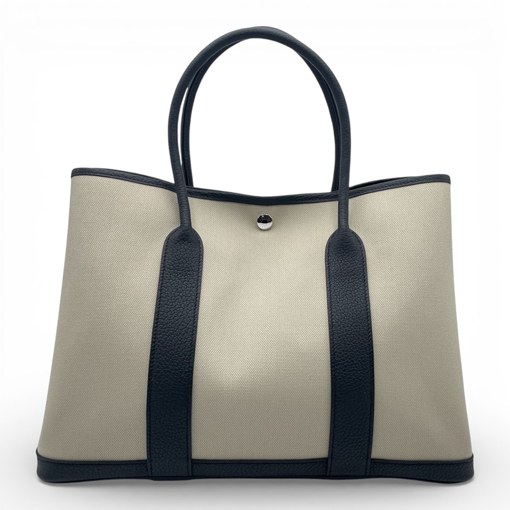 エルメスのガーデンパーティは、シンプルでありながら高級感を漂わせるデザインが魅力の一工芸品です。カジュアルなキャンバス素材に、ほどよくリッチなネゴンダレザーを組み合わせた絶妙なバランスで、デイリーからお仕事シーンまで幅広く活躍します。PMサイズは肩掛け・手持ちともにバランスが良く、PCやA4書類も収まりやすい実用的な大きさ。ユニセックスで持ちやすいシンプルなデザインは、ライフスタイルが変わっても長く愛用いただけます。