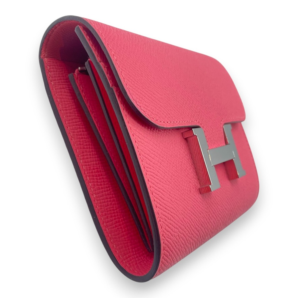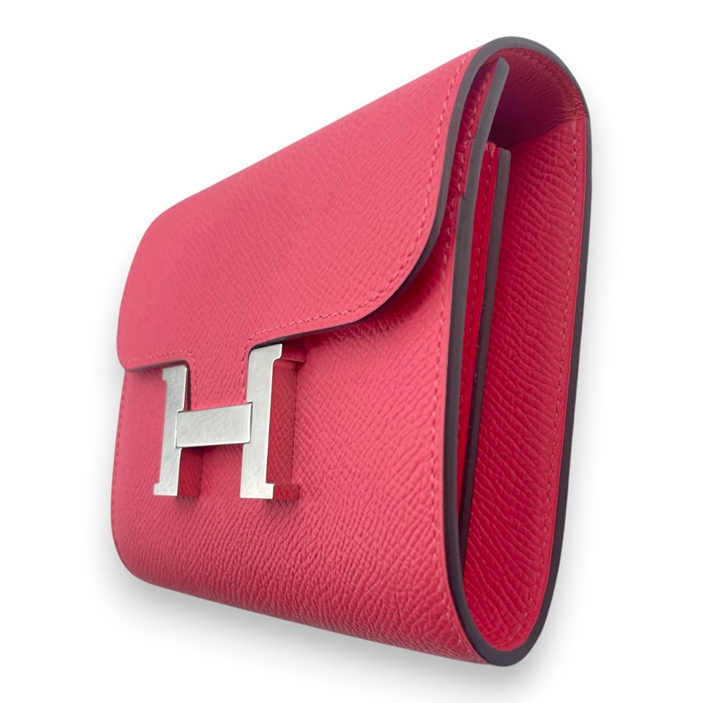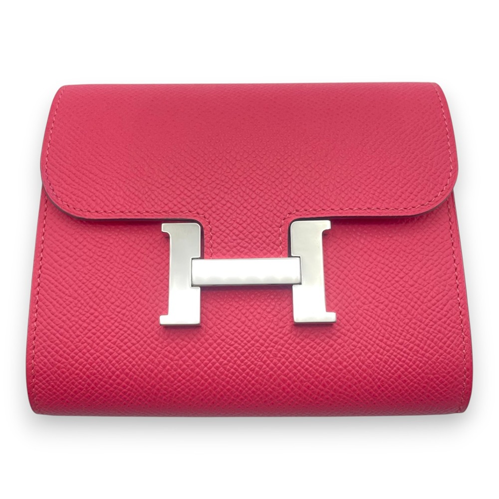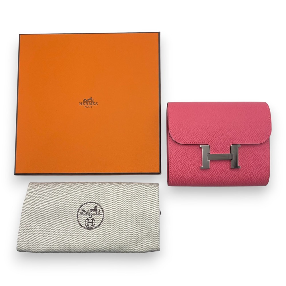 エルメスを代表するアイコン「コンスタンス」をそのままミニマルに凝縮したコンスタンスコンパクト。華やかでフェミニンなローズアザレに、エプソンならではの上質なハリと傷のつきにくさが相まって、デイリーにお使いいただきやすい一品です。カード・紙幣・小銭をスマートに収納できる設計で、ミニバッグとも好相性のお品物です。