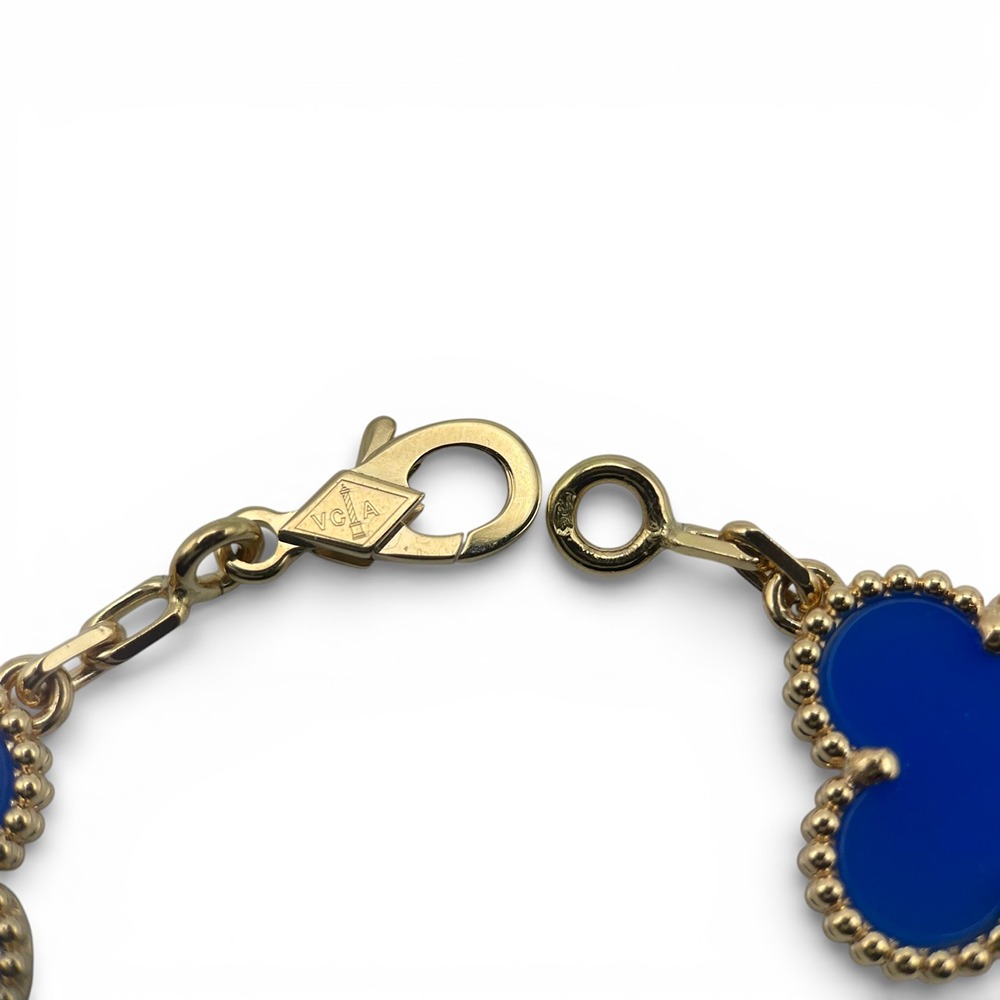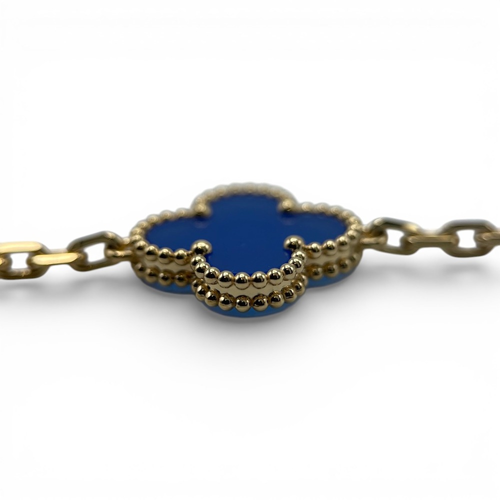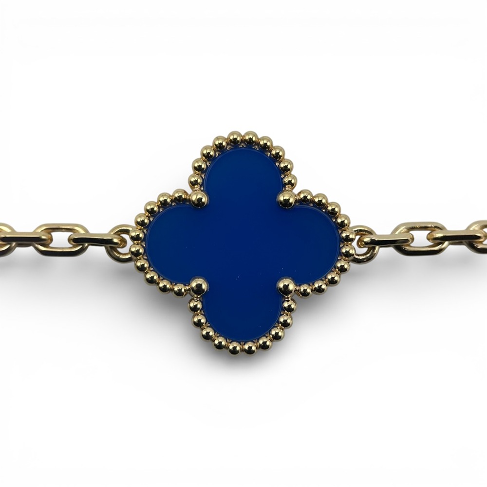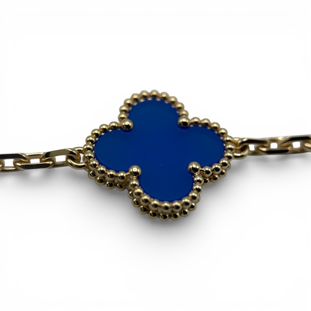 幸運のシンボルとして世界中で愛される、ヴァンクリーフ&アーペル「アルハンブラ」ブレスレット。しっとりとした艶をたたえるアゲートの深い色合いと、イエローゴールドの柔らかな輝きが、手元の所作を上品かつ印象的に演出します。ビジネスシーンには知的な華やぎを、ドレスアップにはラグジュアリーな存在感を添え、男女問わず身につける方のスタイルをさりげなく格上げ。1本で主役にも、時計や他のジュエリーとのレイヤードにも相性の良い、永く愛用できる一本です。