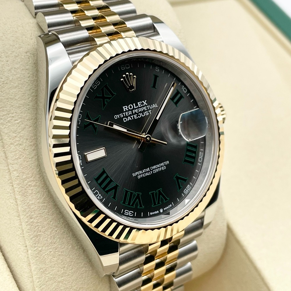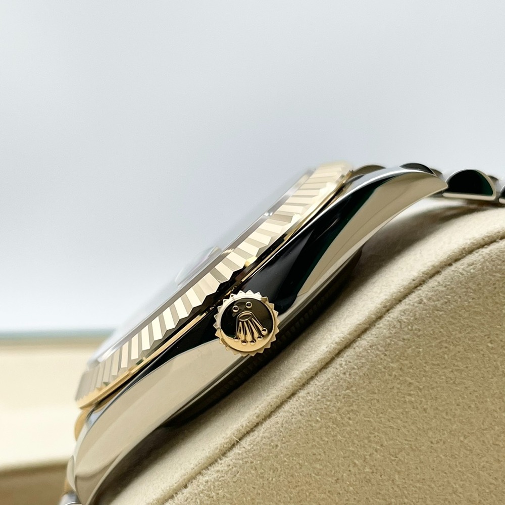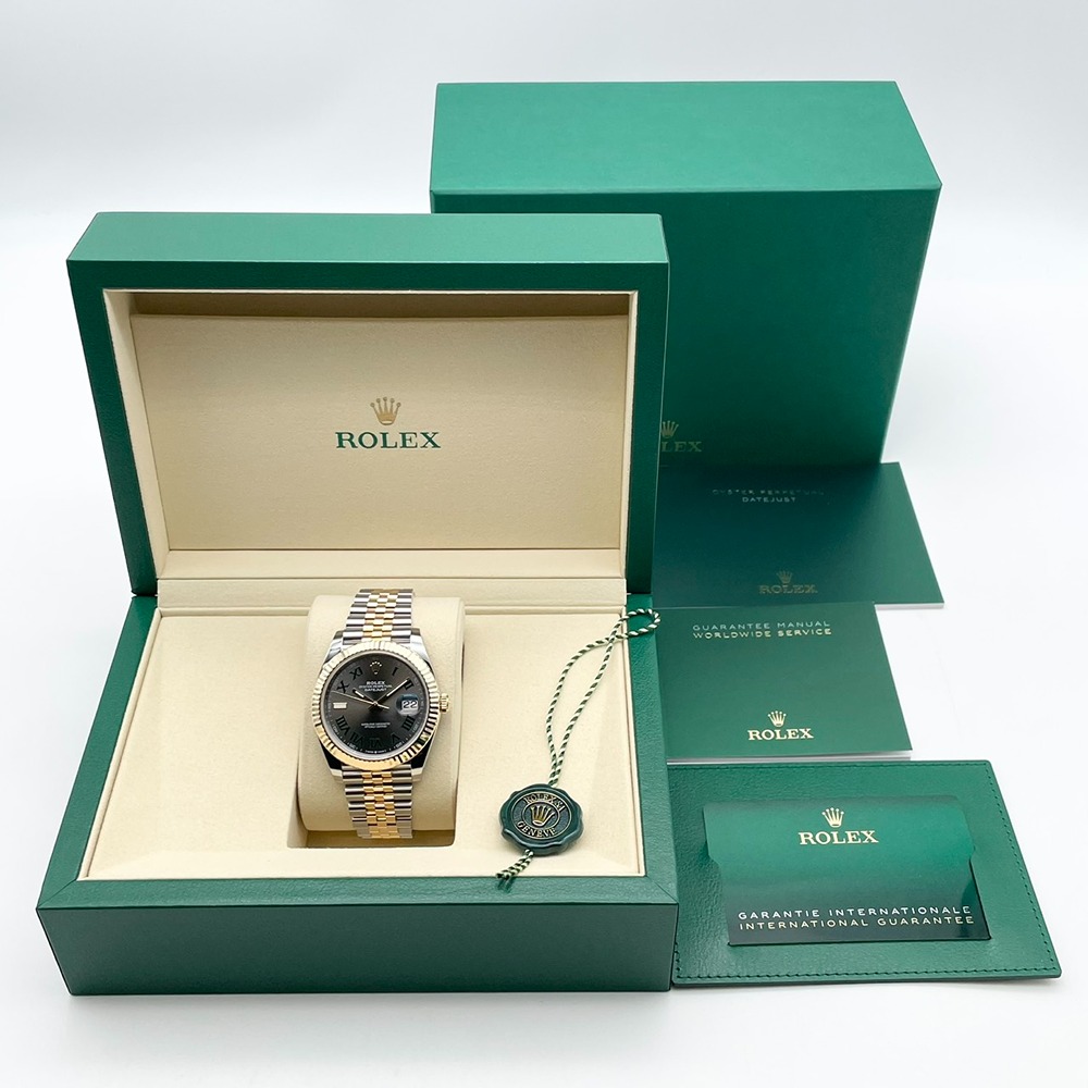 ロレックスの王道ドレスウォッチ「デイトジャスト 41mm」に、ステンレススチールとイエローゴールドのコンビ、そして品格漂うスレートローマンダイヤルを組み合わせた一本です。落ち着いたグレー地に映えるローマンインデックスは視認性と高級感を両立し、オン・オフ問わず確かな存在感を放ちます。41mmの程よいボリュームは、スーツスタイルを一段格上げしつつ、カジュアルにも自然に溶け込み、日常使いの相棒として永くご愛用いただけます。シーンを選ばない普遍的なデザインと、資産性も兼ね備えた魅力的なモデルです。
