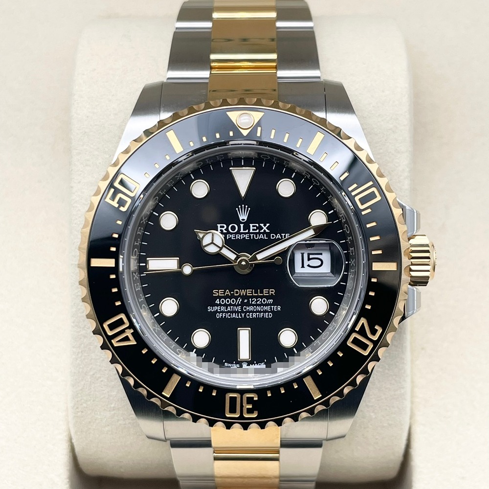 ロレックスのシードゥエラー126603は、時計愛好家を魅了する逸品です。ステンレススチールとイエローゴールドの素材の組み合わせが、高級感を醸し出し、ブラックダイヤルがその美しさを引き立てます。43mmのサイズは存在感を持ちながら、どんなシーンにもフィットするデザインです。このモデルは、堅牢さとエレガンスを兼ね備えた名品であり、ロレックスらしい卓越した機能を持っています。ビジネスからカジュアルまで、多用な場面で活躍する最高の時計です。