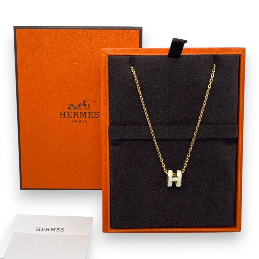 エルメスの中でも不動の人気を誇る「ポップH」ネックレスは、アイコニックなHモチーフが胸元でさりげなく煌めくタイムレスな一品です。シンプルでありながら存在感があり、Tシャツなどのカジュアルスタイルから、ジャケットやワンピースを用いたドレスアップシーンまで幅広く活躍します。上品なボリューム感で、単品使いはもちろん、お手持ちのジュエリーとのレイヤードも楽しめる万能デザイン。初めてのエルメスジュエリーとしてもおすすめの一点です。