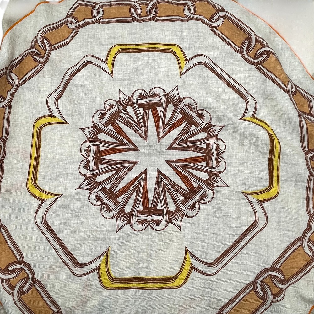 エルメスの大判スカーフ「カレジェアン140 カレイドスコープ・エフェクト」は、身に纏うアートともいえる一本。カレイドスコープ(万華鏡)の名の通り、視線を惹きつける緻密で奥行きのあるパターンが広がり、纏うだけでコーディネートにドラマを生み出します。140サイズなら、ショールのように肩から掛けても、ベルト風にアレンジしてもエレガント。上質な素材感と発色の良さは、ハイブランドならではの格別さです。装いの格を一段引き上げる、長くご愛用いただける逸品です。