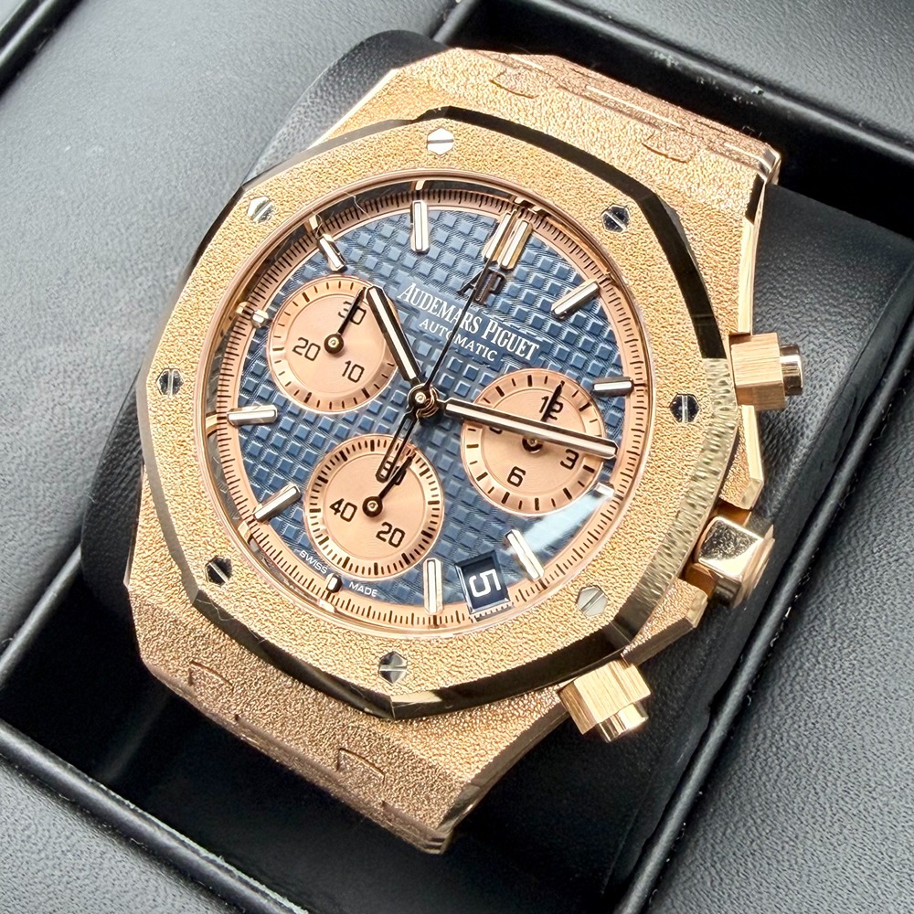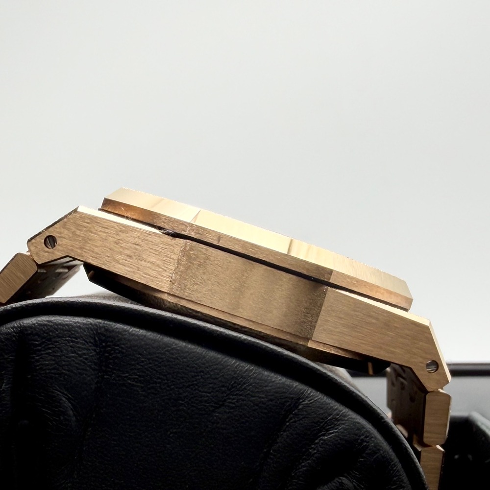 オーデマピゲのロイヤルオークは、ラグジュアリーウォッチの代名詞とも言える魅力的な一品です。その特徴的な八角形のベゼルは、一目でオーデマピゲとわかる洗練されたデザインを持ち、このモデルでは上品なピンクゴールド素材が使用されています。ブルーの文字盤は優雅さと深みを持ち、どんなシーンでもあなたの腕元を美しく彩ることでしょう。41mmのケースサイズは男性にぴったりで、視認性も抜群です。オーデマピゲの精確な時刻表示と、その比類なきクラフトマンシップが詰め込まれたこの時計。ぜひその魅力を手元でお確かめください。