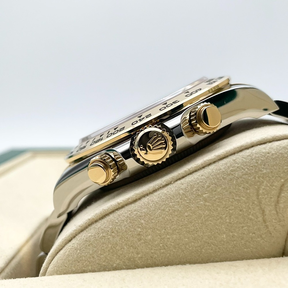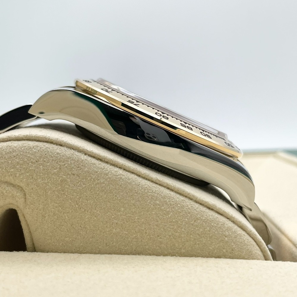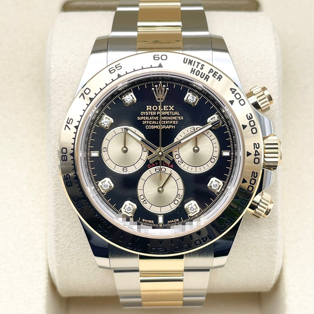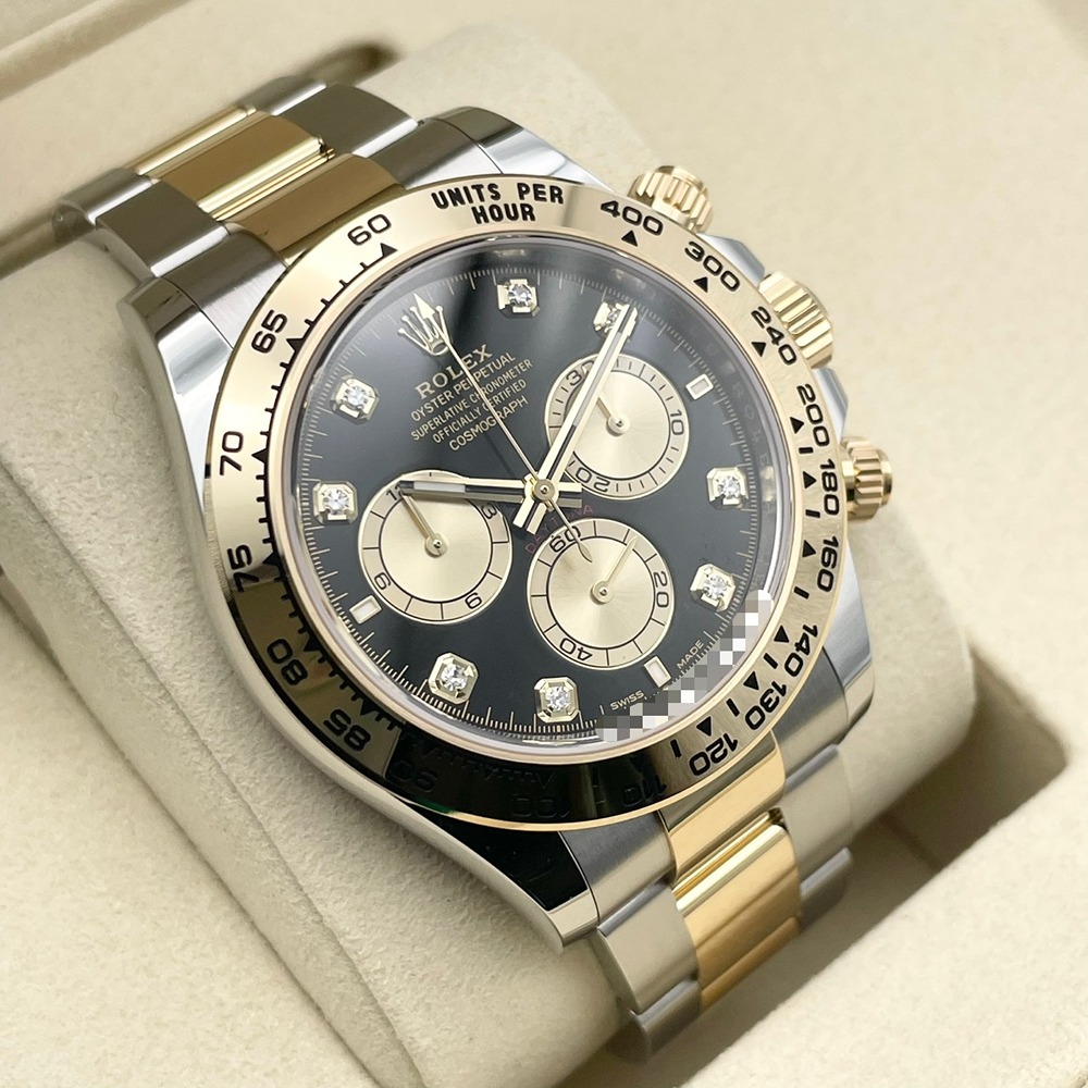 ロレックス スポーツモデルの頂点「デイトナ」の中でも、ステンレススチールとイエローゴールドのコンビが放つ存在感と、精悍なブラックダイヤルのコントラストがひときわ目を惹く126503G。ラグジュアリーさとスポーティさを高次元で融合させた、オンオフ問わず活躍する一本です。イエローゴールドの輝きがインデックスとベゼルを引き立て、資産性・ステータス性ともに長くご愛用いただけるモデルとなっております。人気リファレンスの新品個体をお探しの方に、自信を持っておすすめできる一本です。