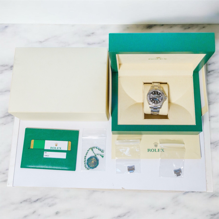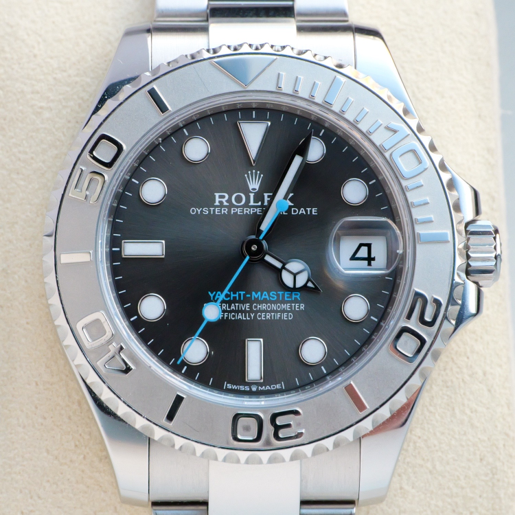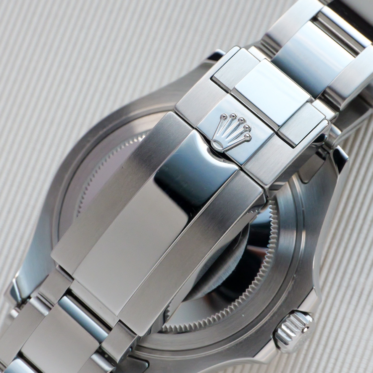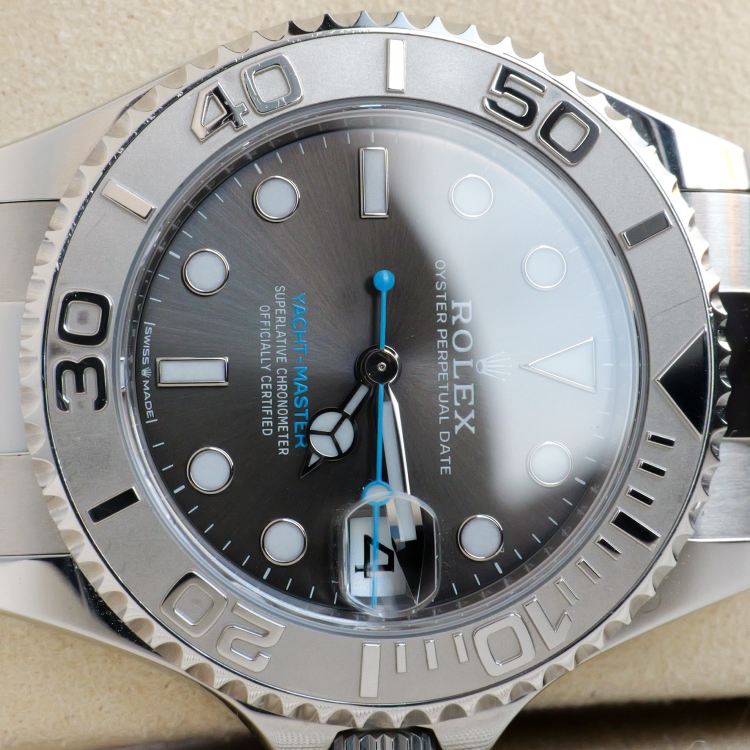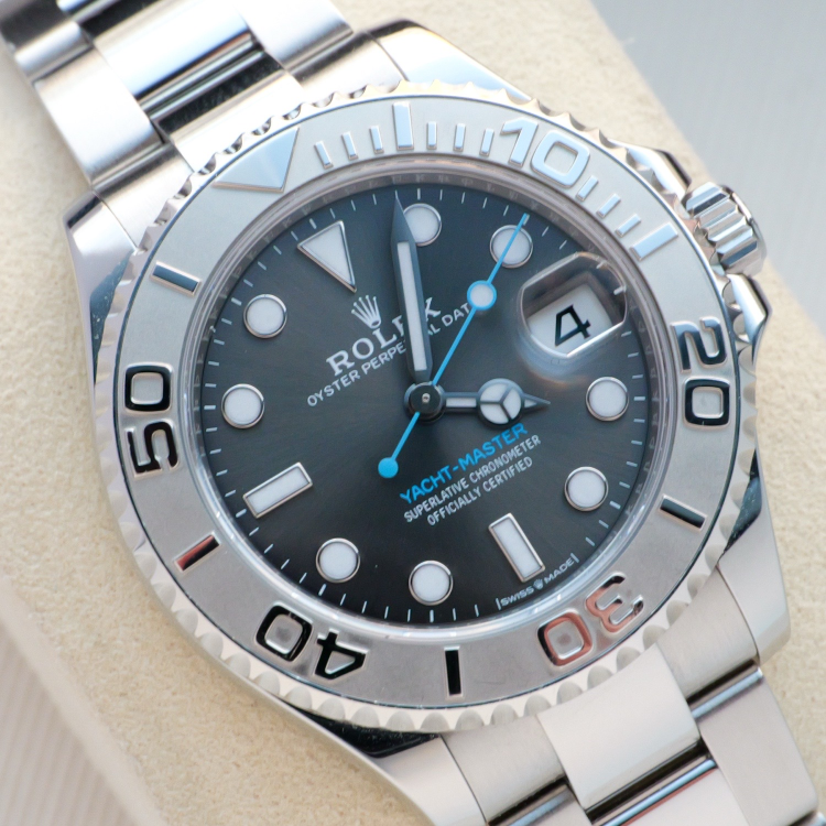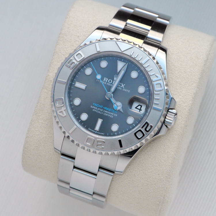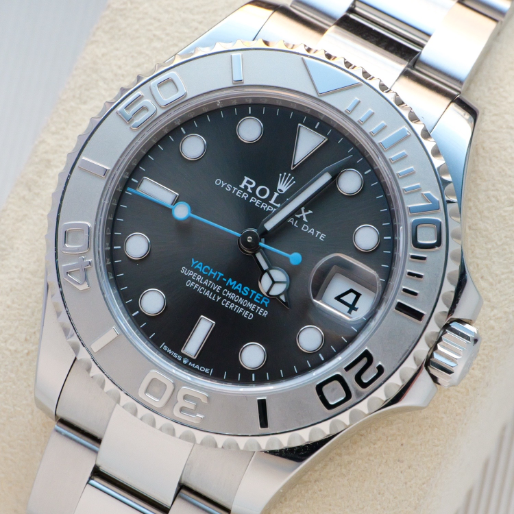 ブルー秒針と「YACHT-MASTER」表記が映える