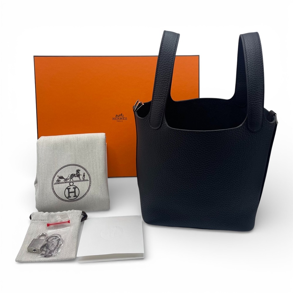 エルメスの中でも高い人気を誇る「ピコタンロック」。シックなブラックカラー「ノワール」は、オン・オフ問わずどんな装いにもすっと馴染み、コーディネートを上質に格上げしてくれます。やわらかくしなやかなトリヨンクレマンスは、傷が目立ちにくく普段使いにも最適。PMサイズは手に収まりの良い絶妙なバランスで、女性はもちろん、男性がパートナーへのギフトとして選ばれることも多いサイズ感です。タイムレスにお使いいただける、自信を持っておすすめできるお品物です。