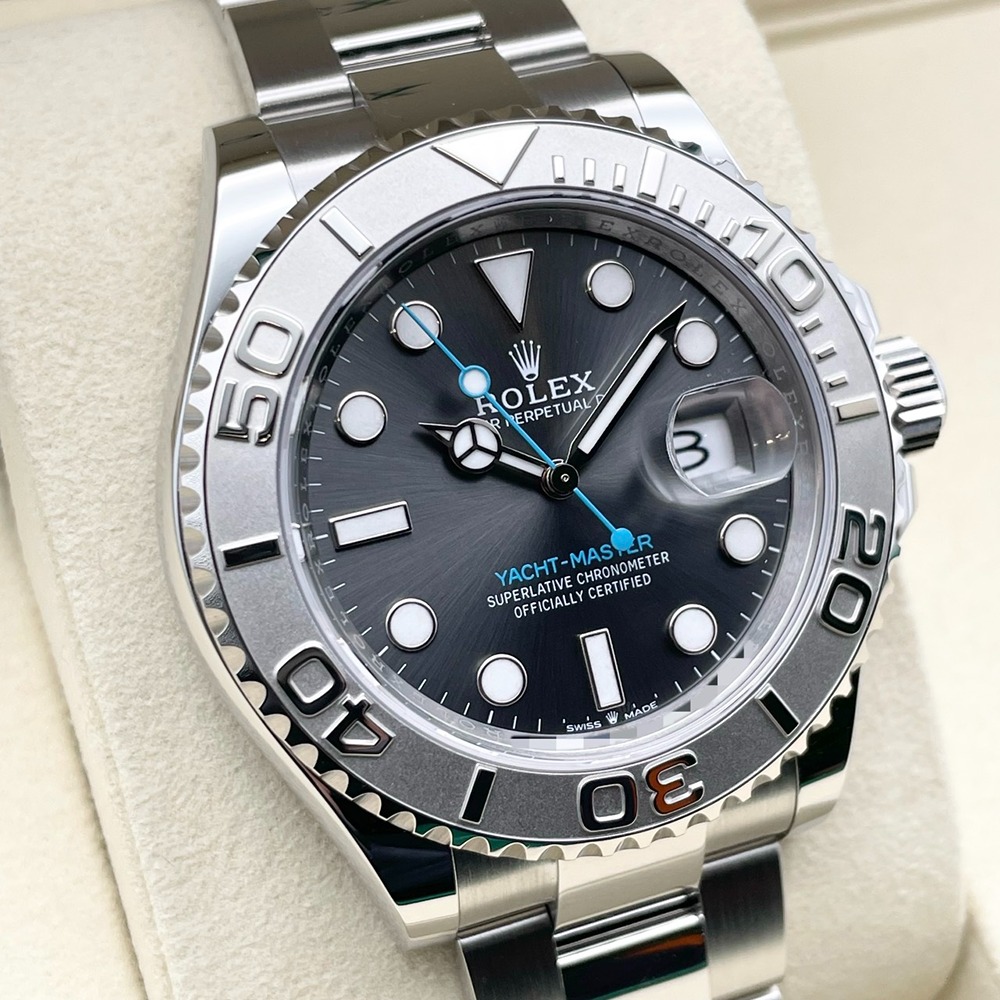 ロレックス スポーツモデルの中でも、ひときわエレガントな存在として人気のヨットマスター126622。ステンレススチールにプラチナベゼルを組み合わせたラグジュアリーな仕様で、落ち着いたスレート文字盤が大人の余裕を感じさせます。40mmの絶妙なサイズ感はビジネスからカジュアルまでシーンを選ばず、さりげなく品格を高めてくれます。ヨットマスターならではの立体的なベゼルと光のコントラストが手元を華やかに演出し、資産性と実用性を兼ね備えた一本として長くご愛用いただけます。