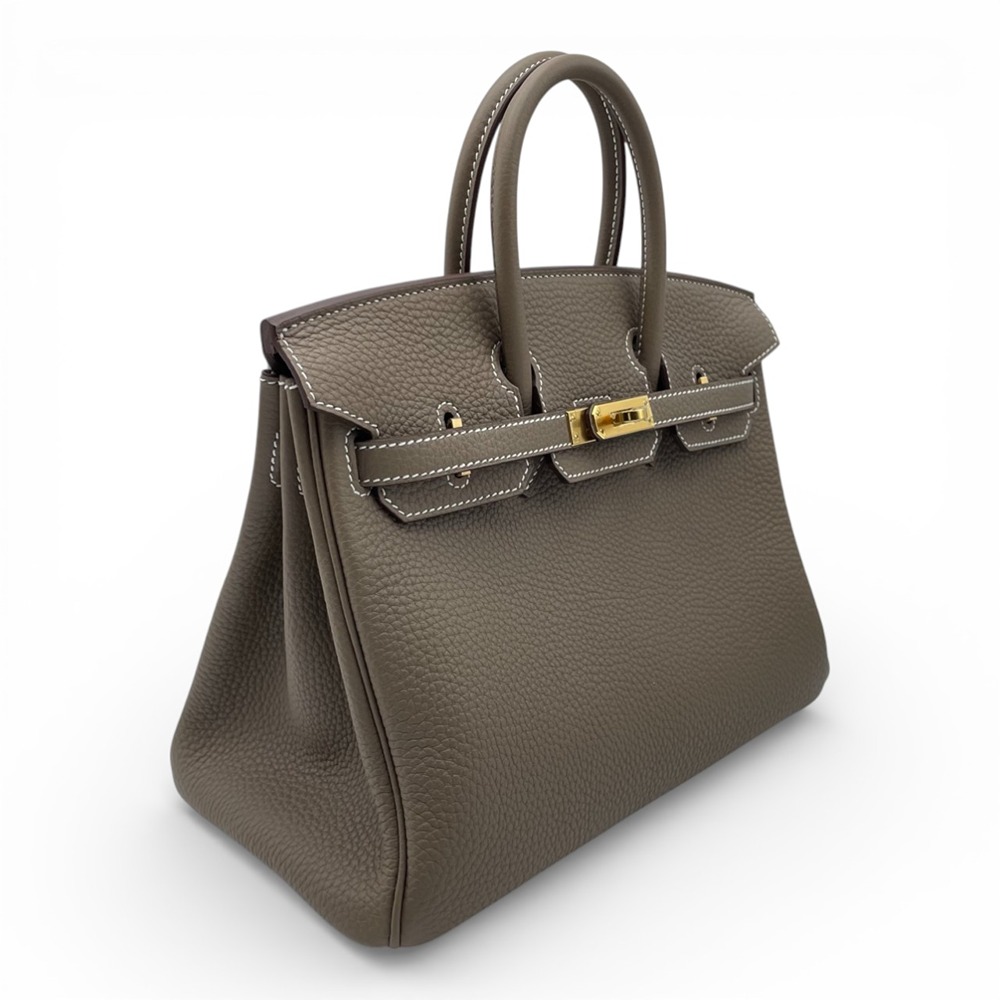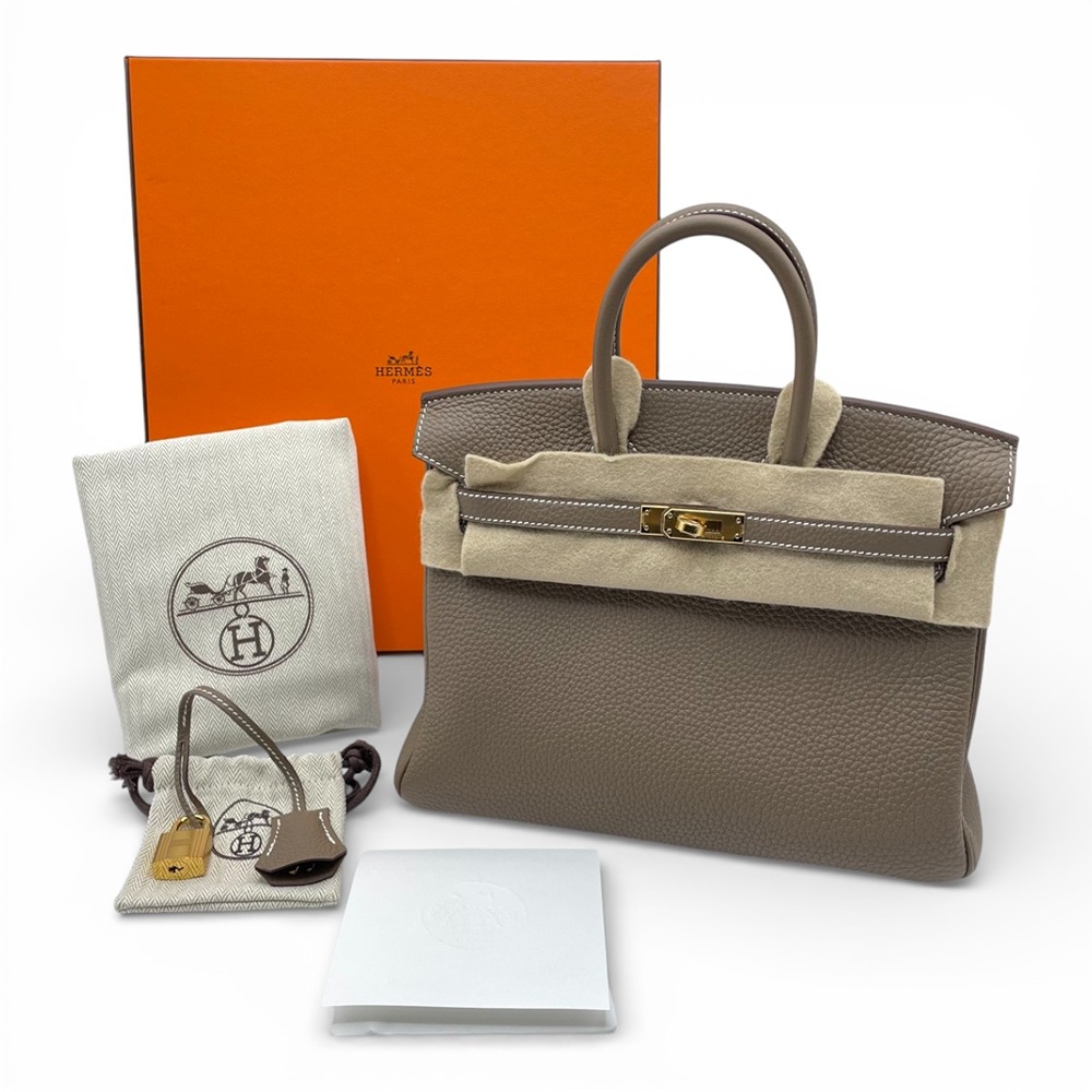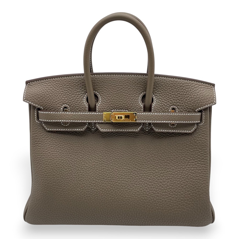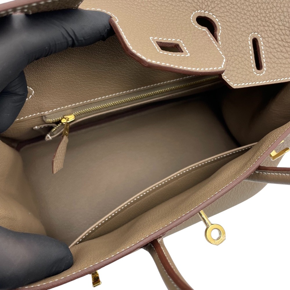 エルメスを代表するアイコンバッグ「バーキン」。上品なグレージュトーンのエトーブは、どんな装いにも自然に溶け込み、オンオフ問わずお使いいただける万能カラーです。細かなシボが美しいトゴ素材は、傷が目立ちにくく、程よい硬さと軽さを兼ね備えた人気レザー。小ぶりな25サイズは、女性らしいバランスでお持ちいただける一方、必要な手回り品はしっかり収まる実用的なサイズ感です。洗練されたオーラを放つ、ワンランク上の日常を叶える一本です。